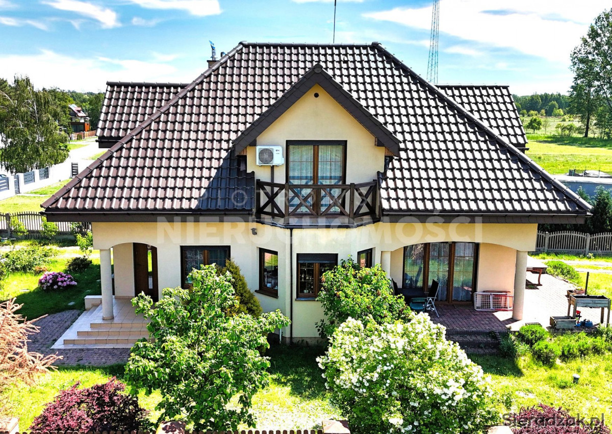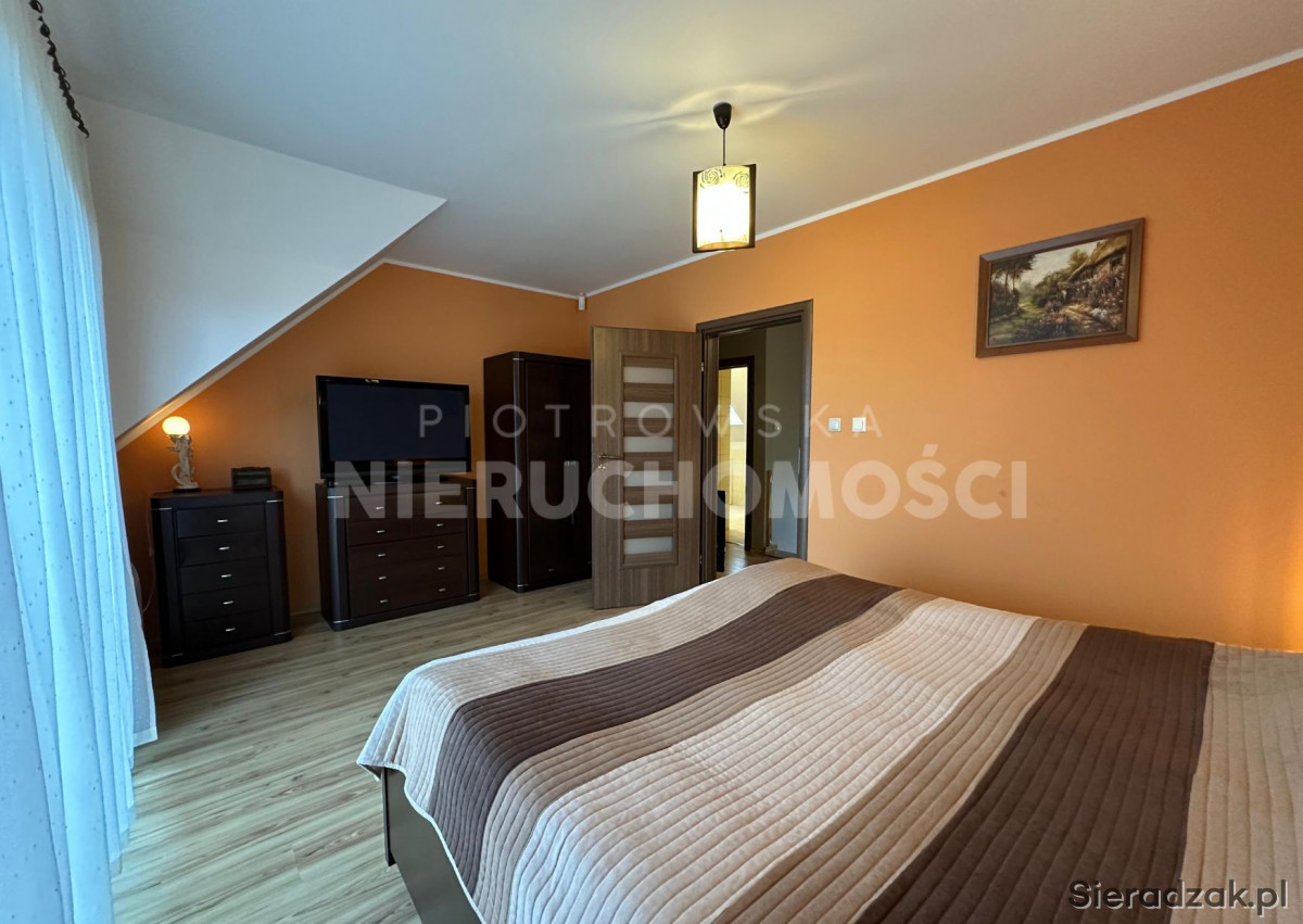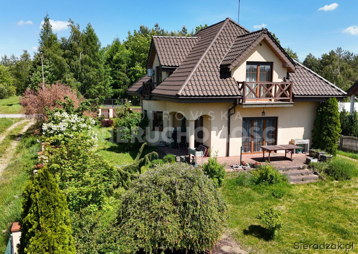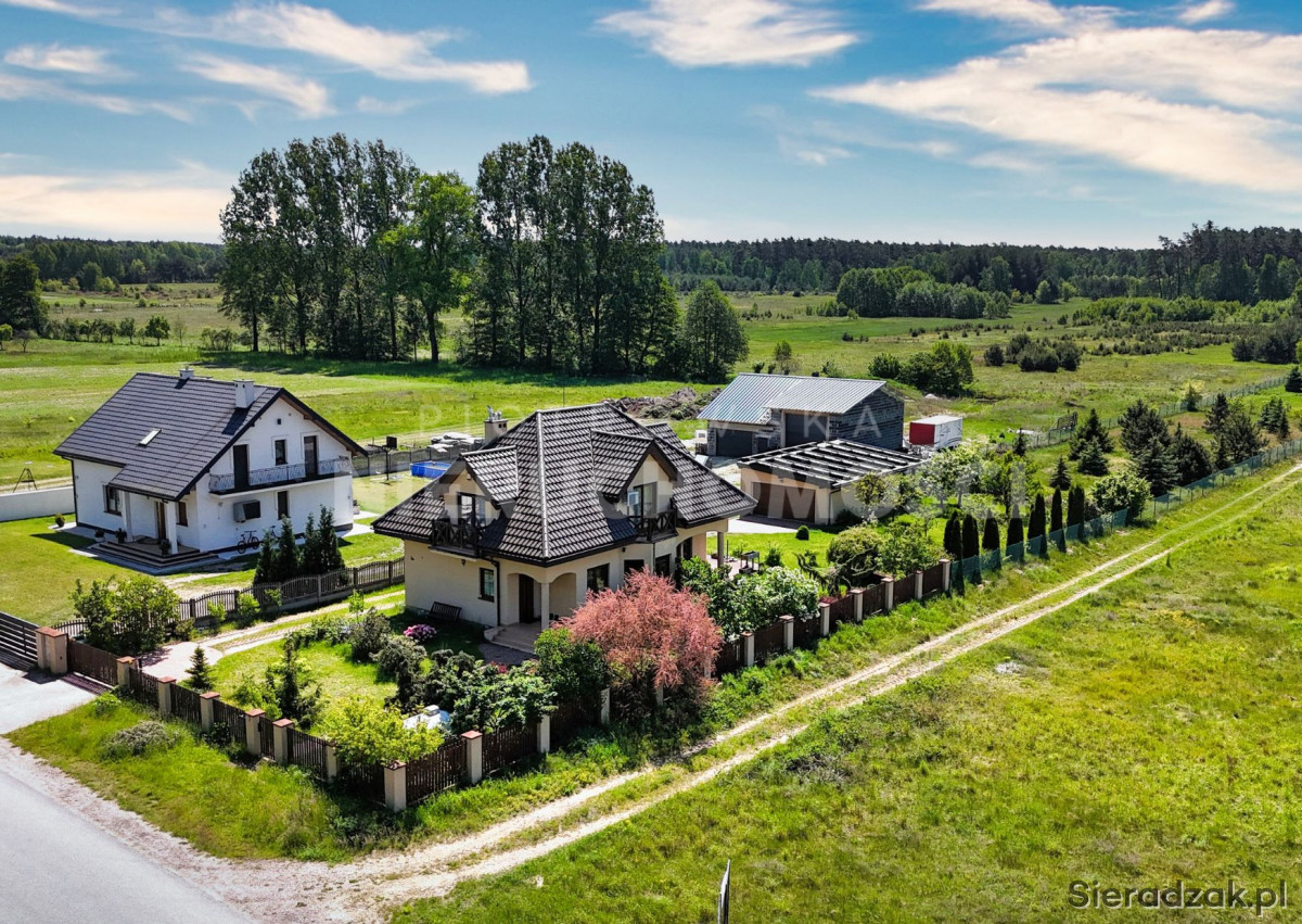 Dom położony jest na działce z wjazdem od południa – idealne ustawienie względem stron świata. Otoczenie to cicha, zielona okolica, sprzyjająca odpoczynkowi po pracy, a jednocześnie zapewniająca szybki dojazd do Warty, Sieradza i innych pobliskich miejscowości.
