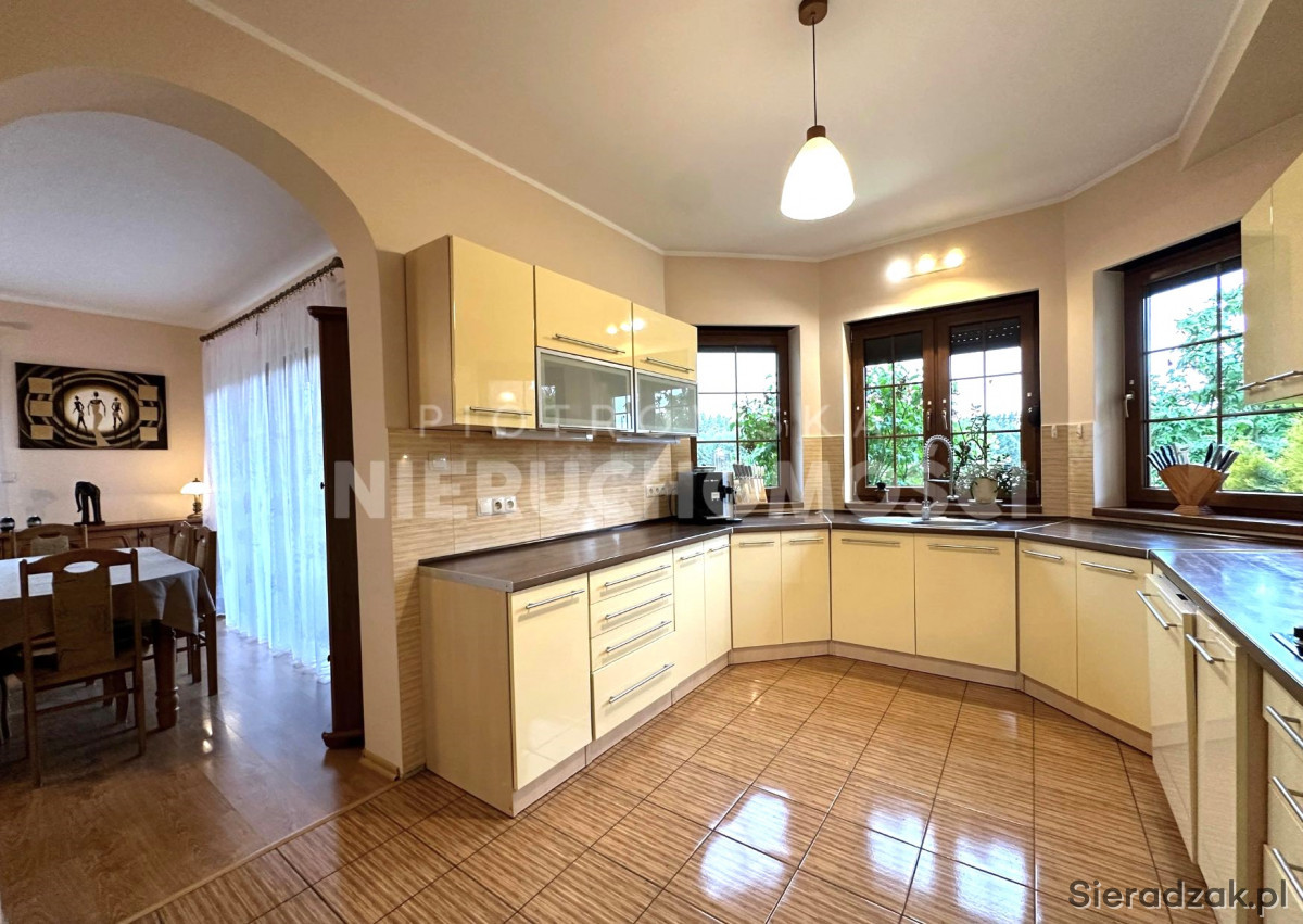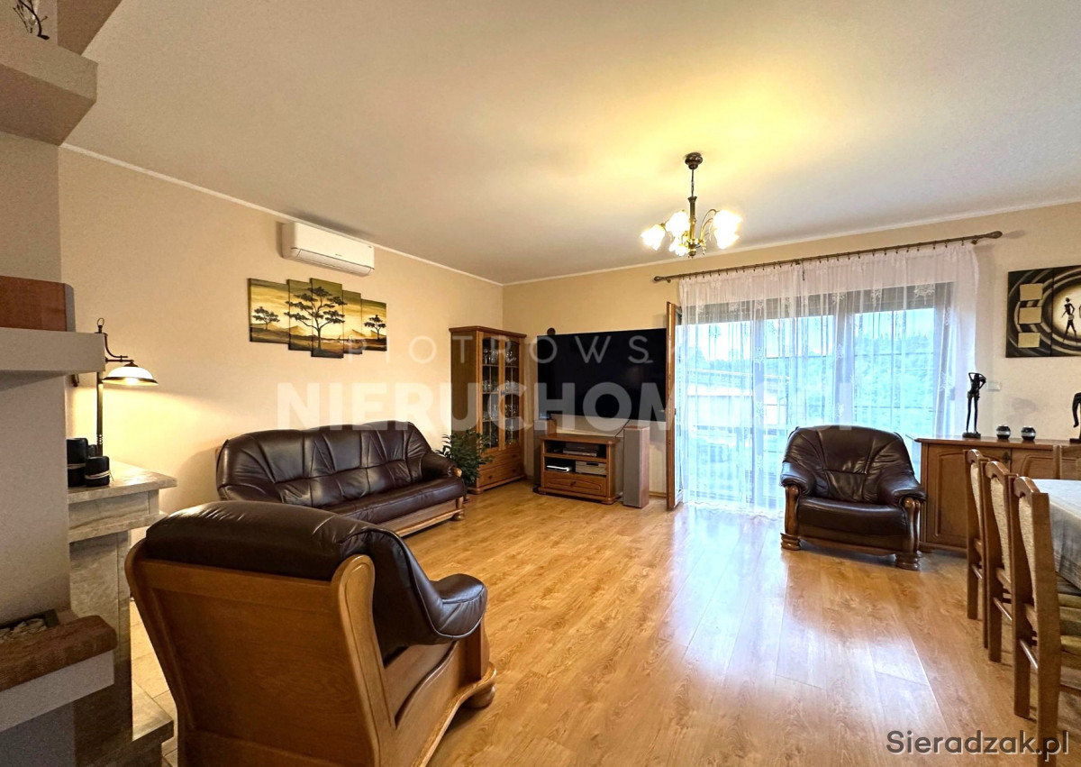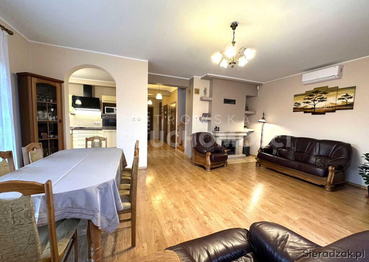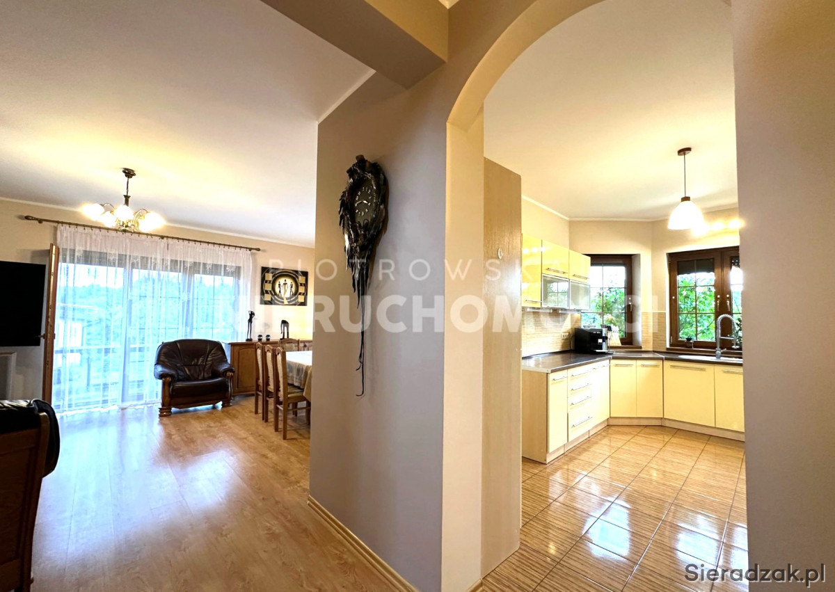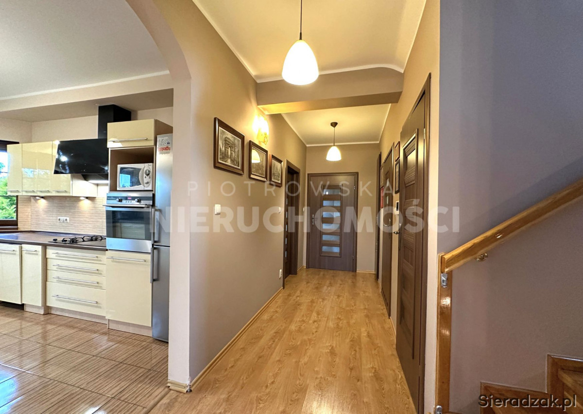 Dom położony jest na działce z wjazdem od południa – idealne ustawienie względem stron świata. Otoczenie to cicha, zielona okolica, sprzyjająca odpoczynkowi po pracy, a jednocześnie zapewniająca szybki dojazd do Warty, Sieradza i innych pobliskich miejscowości.