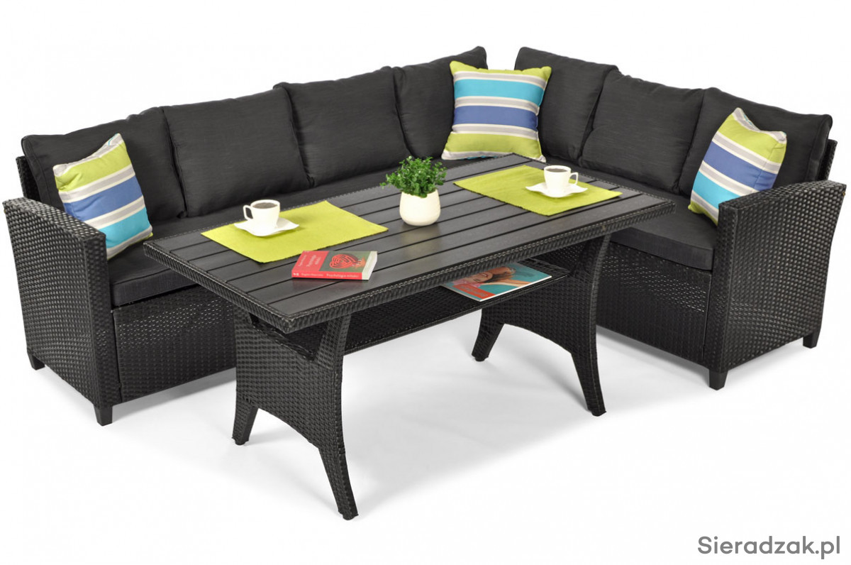 Narożnik ogrodowy z technorattanu SZTOKHOLM - czarny SUPER CENA = DARMOWA DOSTAWA
