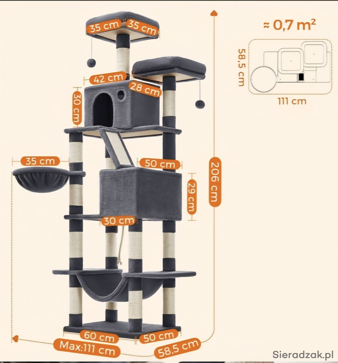 sprzedam duży drapak dla kotów. Stan bardzo dobry, jak nowy. Wymiary podane są na zdjęciu.