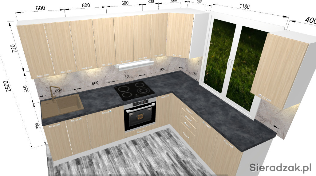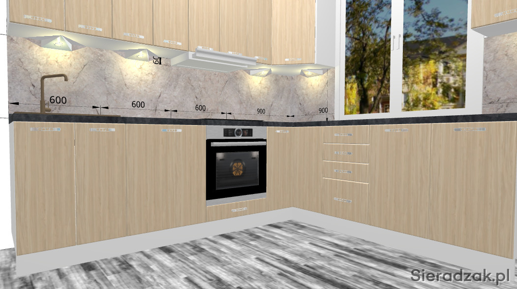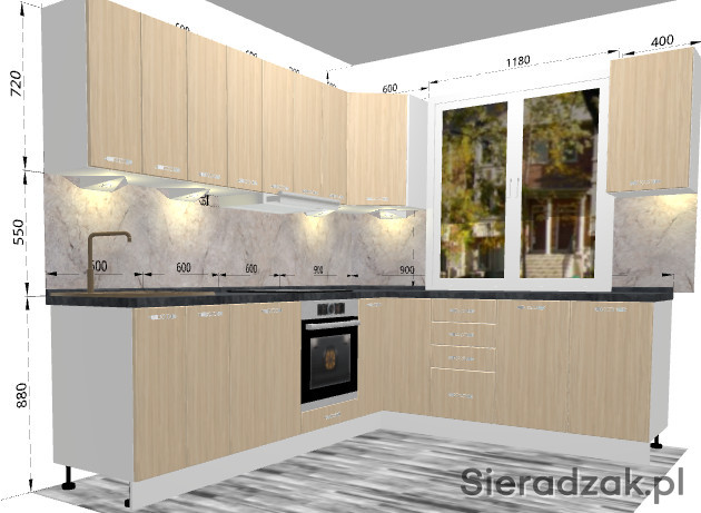 Projekty 3D o dowolnym stopniu skomplikowania, z oknami, drzwiami, z wymiarami pomieszczeń, z kolorem szafek, fasad, blatów, których potrzebujesz - jesteśmy w stanie odzwierciedlić wszystko w naszych projektach i zaoferować kuchnie Twoich marzeń w przystępnych cenach.
