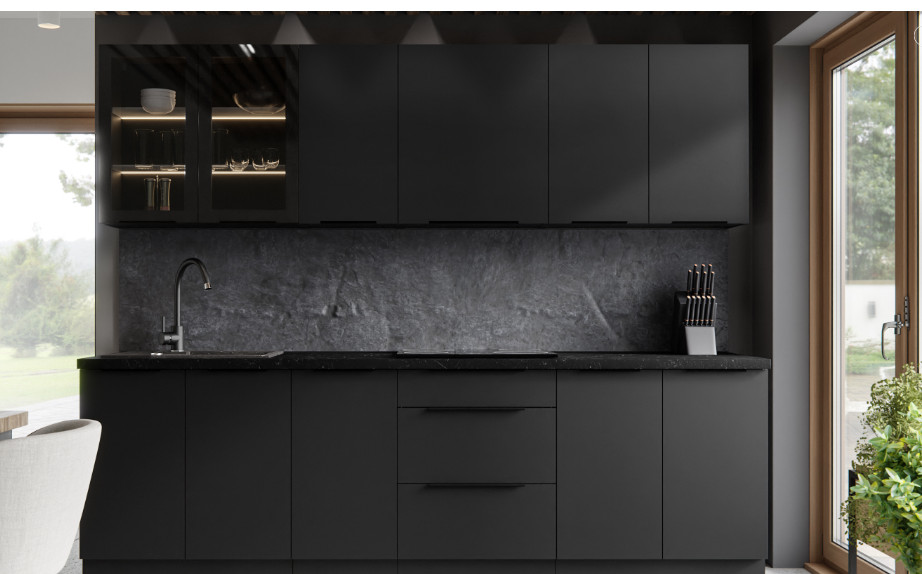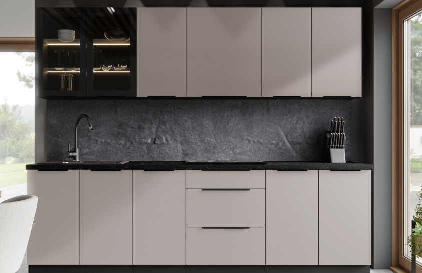 2.- Ciche samodomykacze szuflad i drzwi są dostarczane nawet do najtańszych kuchni. Szuflady są dostarczane na prowadnicach teleskopowych i mają metalową podstawę już w podstawowej konfiguracji, we wszystkich kuchniach.