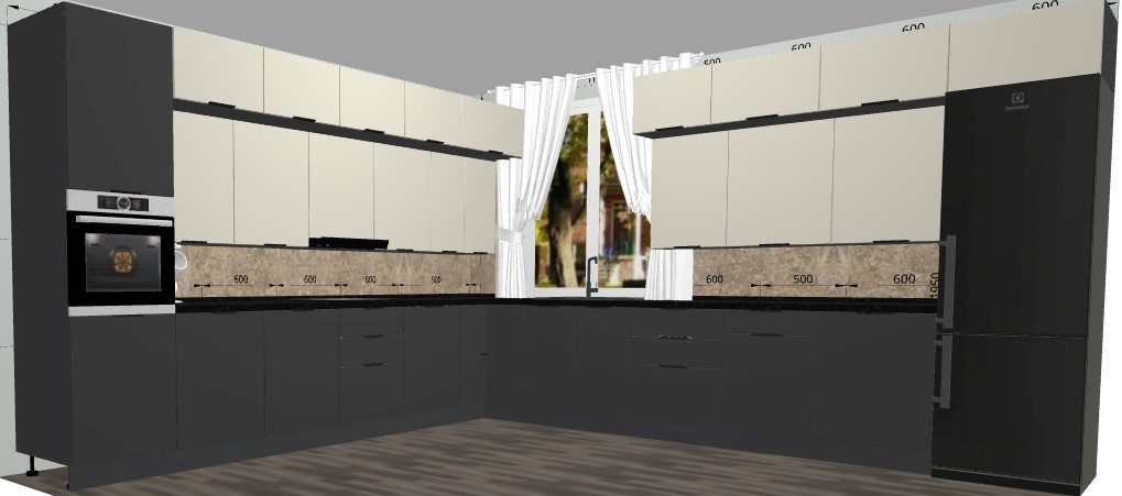 Projekty 3D o dowolnym stopniu skomplikowania, z oknami, drzwiami, z wymiarami pomieszczeń, z kolorem szafek, fasad, blatów, których potrzebujesz - jesteśmy w stanie odzwierciedlić wszystko w naszych projektach i zaoferować kuchnie Twoich marzeń w przystępnych cenach.