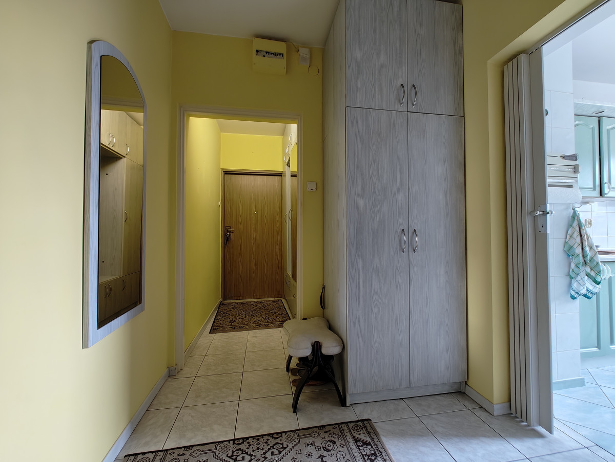Mieszkanie składa się z pokoju dziennego, sypialni, kuchni, łazienki, wc, przedpokoju i balkonu.
