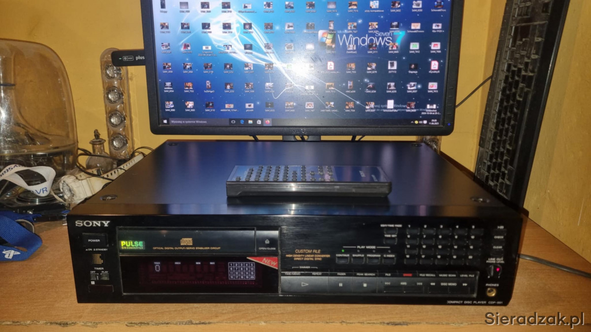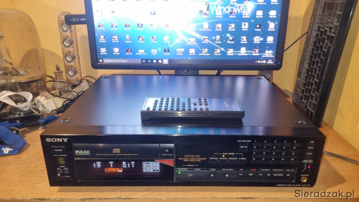 Odtwarzacz CD Sony CDP-991 TOPOWY MODEL z wyjściem cyfrowym optycznym i pilotem.