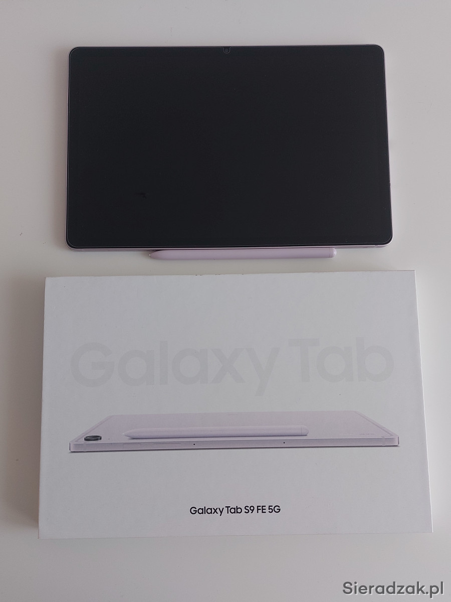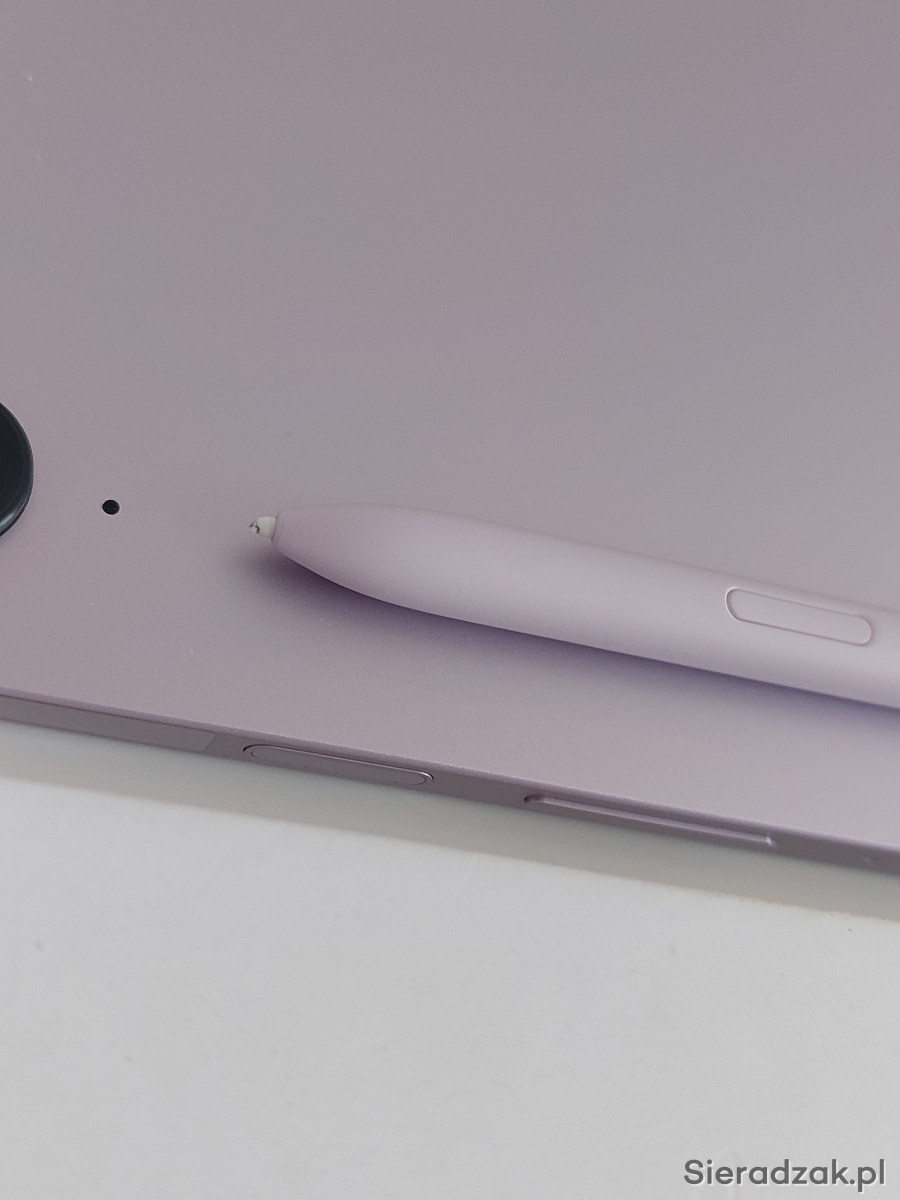 Tablet SAMSUNG Galaxy Tab S9 FE 10.9 5G 6GB 128GB Fioletowy SM-X516BLIAEUE zakupiony w październiku 2023. Posiada naklejone szło. Jedynym mankamentem jest delikatnie starty rysik, w którym wystarczy wymienić końcówkę. Niestety cały czas brakuje mi na to czasu. Etui posiada normalne ślady użytkowania. Tablet w stanie idealnym, działa bardzo płynnie. Świetna jakość obrazu oraz dźwięk. Używany podczas studiów, tylko w weekendy.