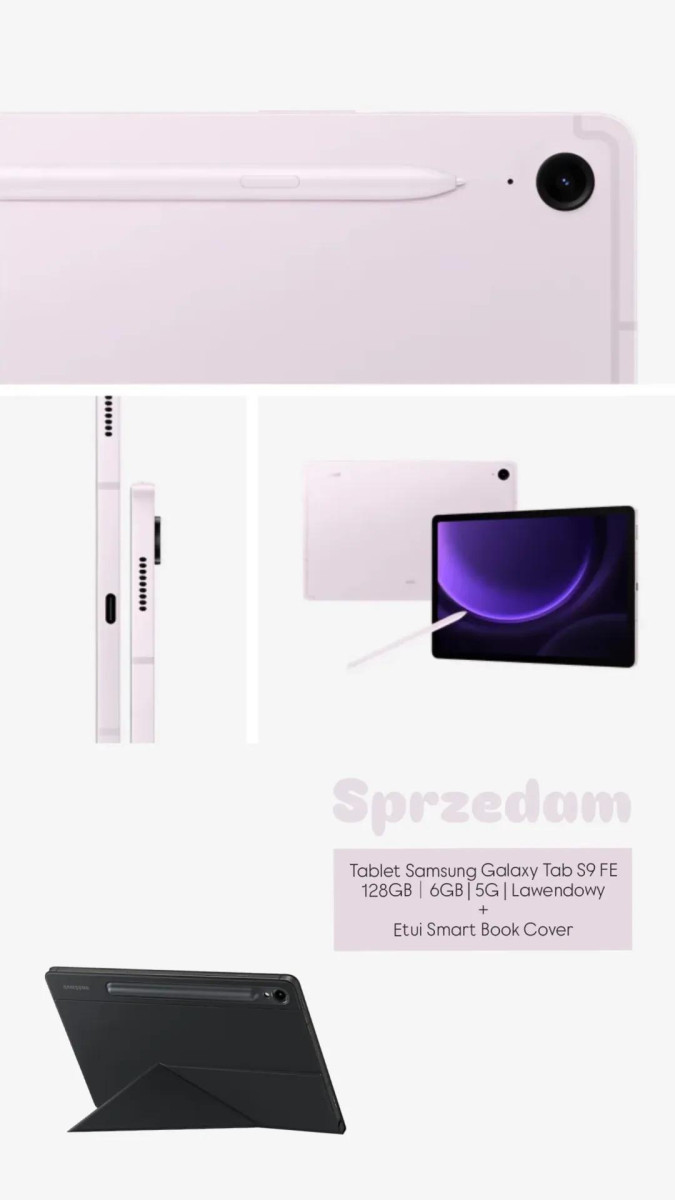 Na sprzedaż Samsung Galaxy Tab S9 FE 5G 10.9” 6/128GB w eleganckim kolorze fioletowym.