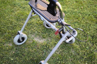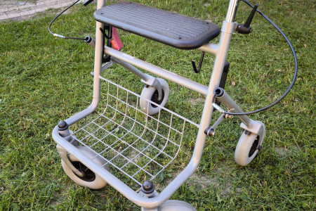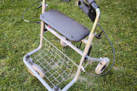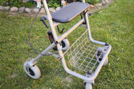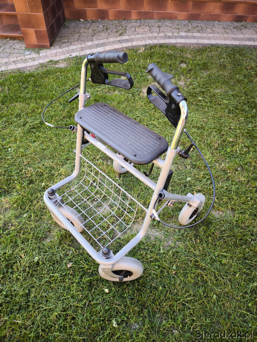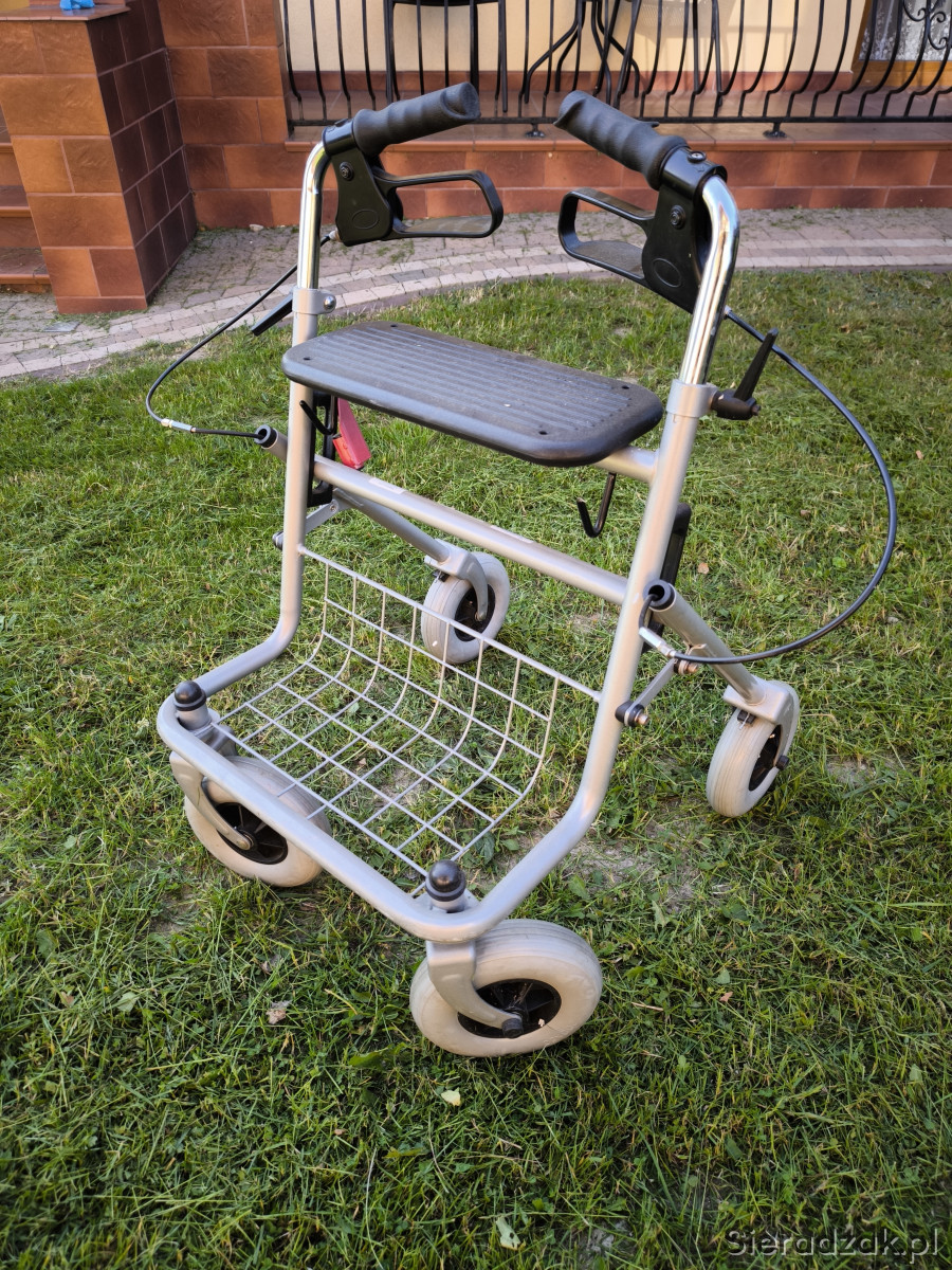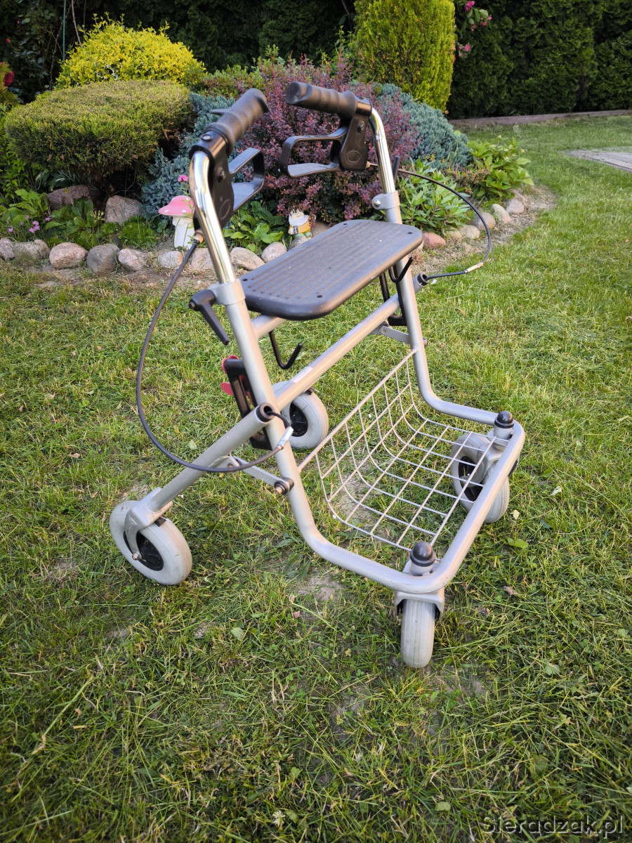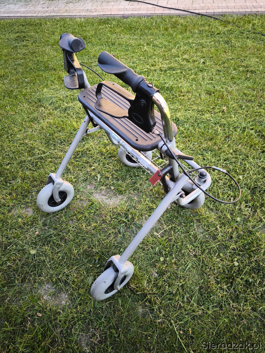 Balkonik rehabilitacyjny na gumowych kołach , sprawne hamulce, . Szerokie siedzisko. mało używany