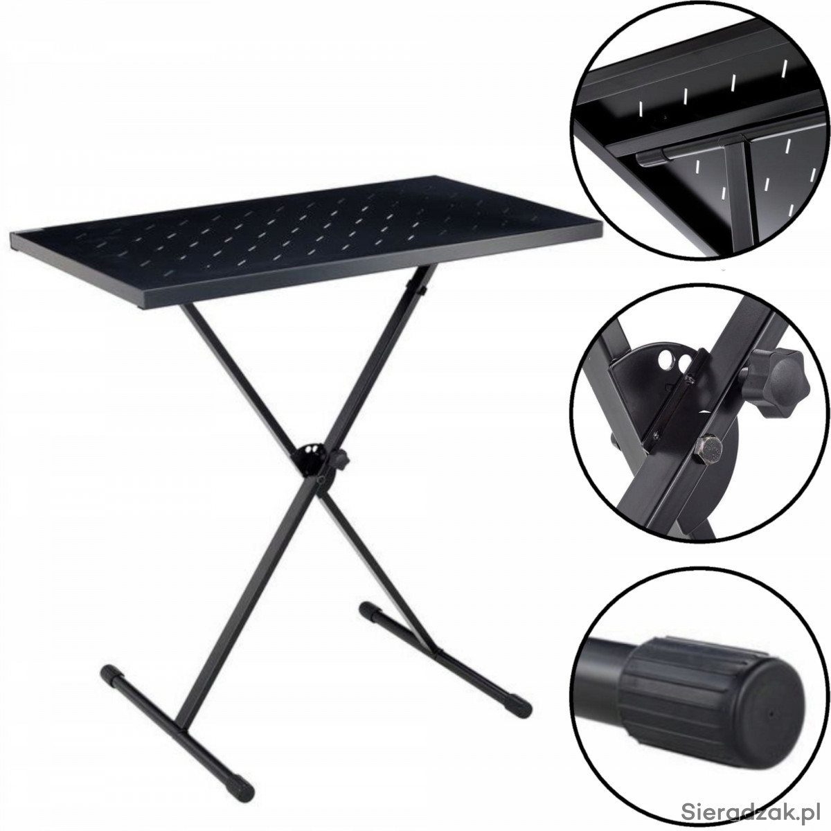 Uniwersalny przenośny statyw na różnego rodzaju sprzęt sceniczny estradowy np. mikser audio /DJ, konsola DJ kontroler DJ, laptop, wzmacniacz, keyboard itp. Wymiary stołu 820 x 465 mm regulacja wysokości 720 - 960 mm