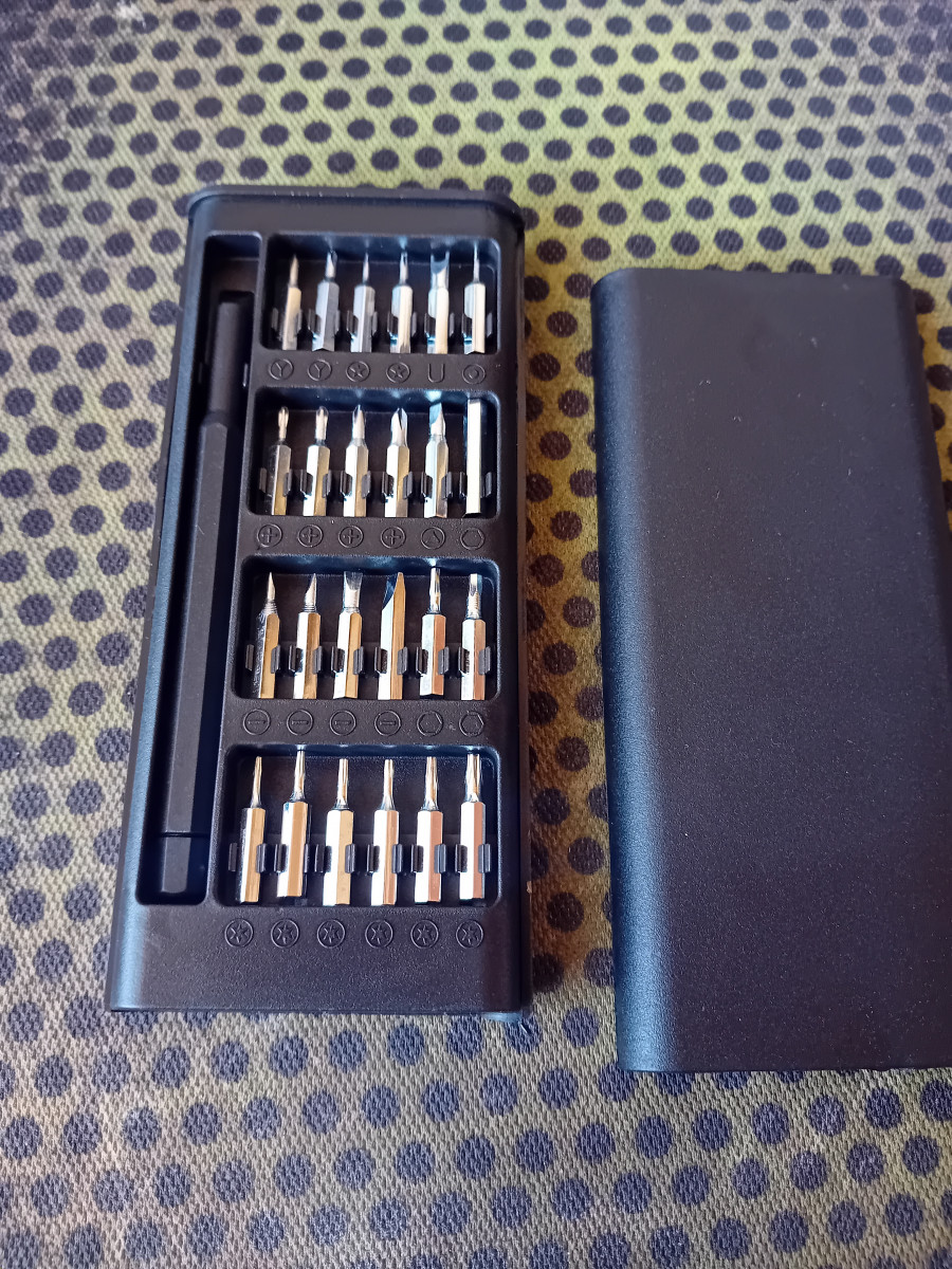 Zestaw 25 małych bitów do naprawy np. Telefonow czy innych urzadzen elektrycznych widoczny na zdjęciach.