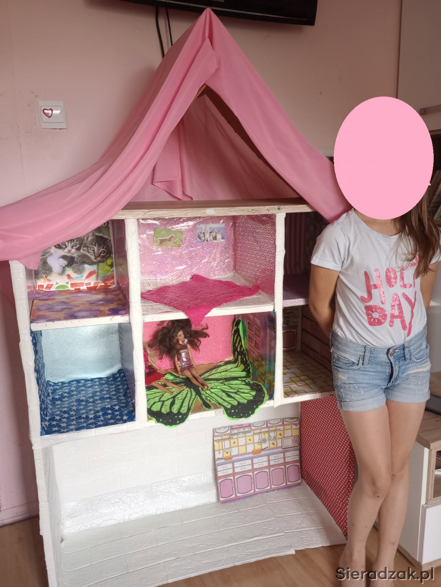 Sprzedam używany domek dla lalek wymiary wysokość 160cm, szerokość 121, dodaję 2 lalki gratis, jedzenie dla barbi i 2 pluszki, domek sprzedję bez mebli