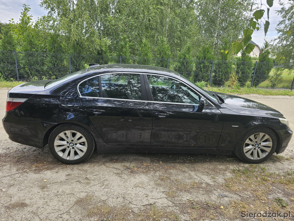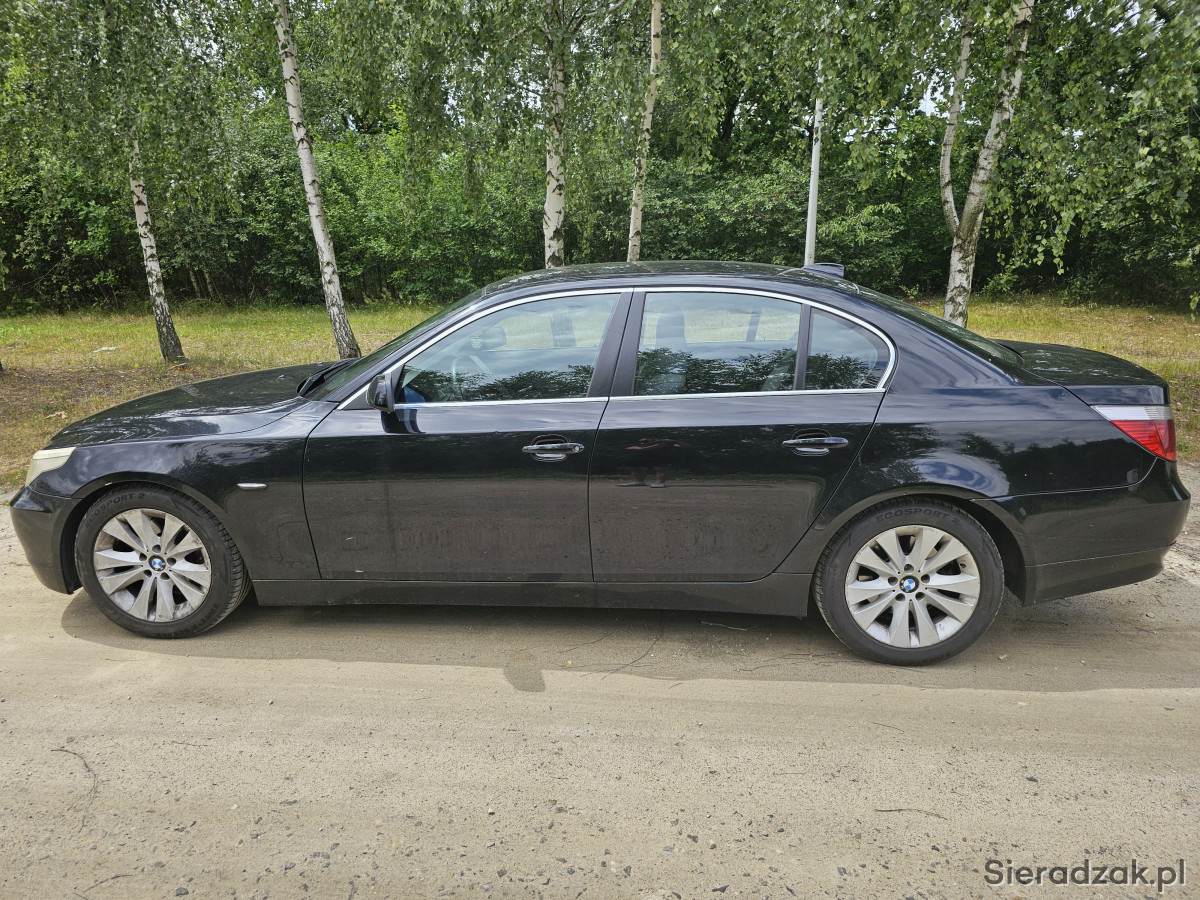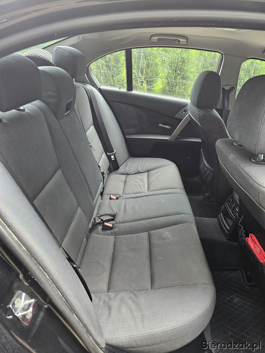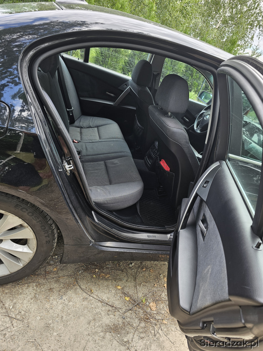 Sprzedam BMW 525D, samochód nieźle się prezentuje i jak na swój wiek na prawdę dobrze sobie radzi. Przebieg jest głownie autostradowy, dojeżdżałem tym samochodem głównie do pracy kilkaset km tygodniowo ale niestety zaszła potrzeba na kupno samochodu w kombi. Samochód jest doinwestowany, lakier zależy jak dla kogo wymaga małej polerki, jak to na czarnym samochodzie, każdą ryskę widać. Od razu po kupnie samochodu została podniesiona moc do 240KM(bezpieczny pułap) oraz zrobiony soft skrzyni w profesjonalnej firmie. Samochód posiada sprawną klimatyzację, w której niedawno zrobiona była obsługa oraz dobijany czynnik. Odkąd mam samochód również zostały zrobione: