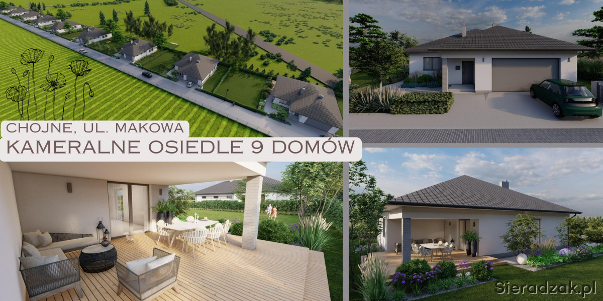 Osiedle domów jednorodzinnych w stanie deweloperskim w miejscowości Chojne przy ul. Makowej, gdzie powstaje 9 budynków o powierzchni 184,24 m2. Domy usytuowane są na działkach o powierzchni od 894 m2 do 1464 m2.