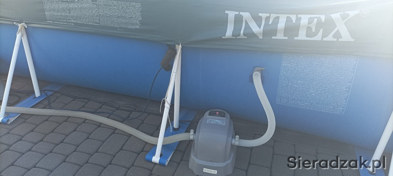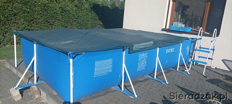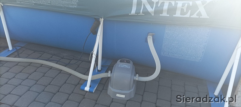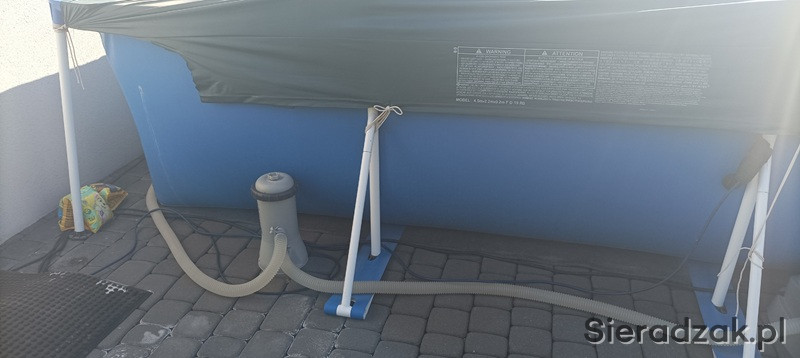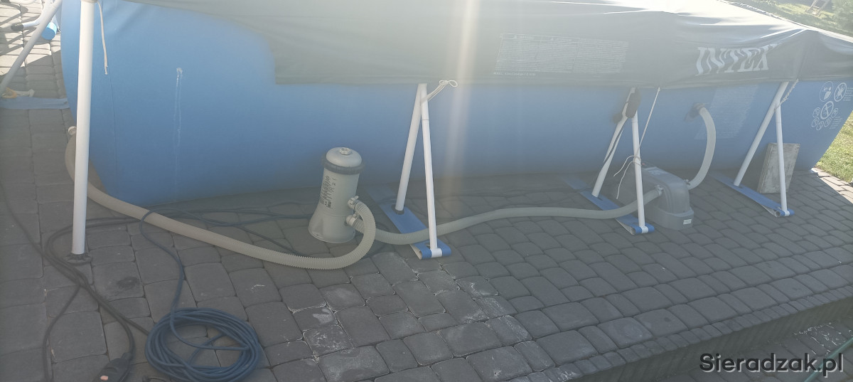 Sprzedam bardzo ładny basen urzywany dwa sezony ze wszystkimi akcesoriami co na zdjęciach . Czyli drabinka , pompka filtrująca , podgrzewacz , podkład pod basen gąbka termiczna której nie ma na foto , odkurzacz do czyszczenia dna , sitko , tester wody , instrukcja , termometr , dwa pływaki do chemi oraz przykrycie .
