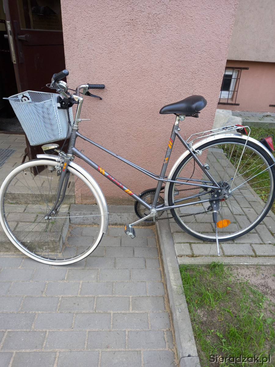 Sprzedam tanio porządny rower miejski niemieckiej firmy Alfira. Koła 28 cali , przerzutka tylna 5-stopniowa , rozmiar ramy 19 cali ( wzrost 160 -175 cm ) - używany ale wszystko sprawne włącznie z oświetleniem . Bardzo wygodne ,prawie nowe siedzisko . Koszyk na szybkozłączce . Rower bardzo lekko chodzi. Jedyny mankament to pęknięta osłona łańcucha - do dokupienia . Zdecydowanemu klientowi dodam zapięcie rowerowe : )