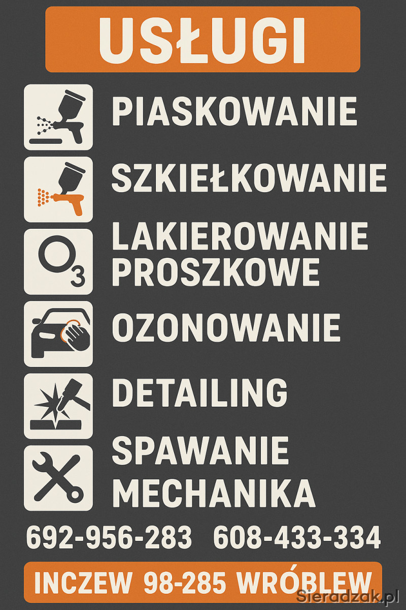 Witam oferuję takie usługi jak Polerowane lakieru.Oczyszczanie metodą piaskowania oraz po piaskowaniu szkiełkowanie na błysk,lakierowanie malowanie po piaskowaniu.