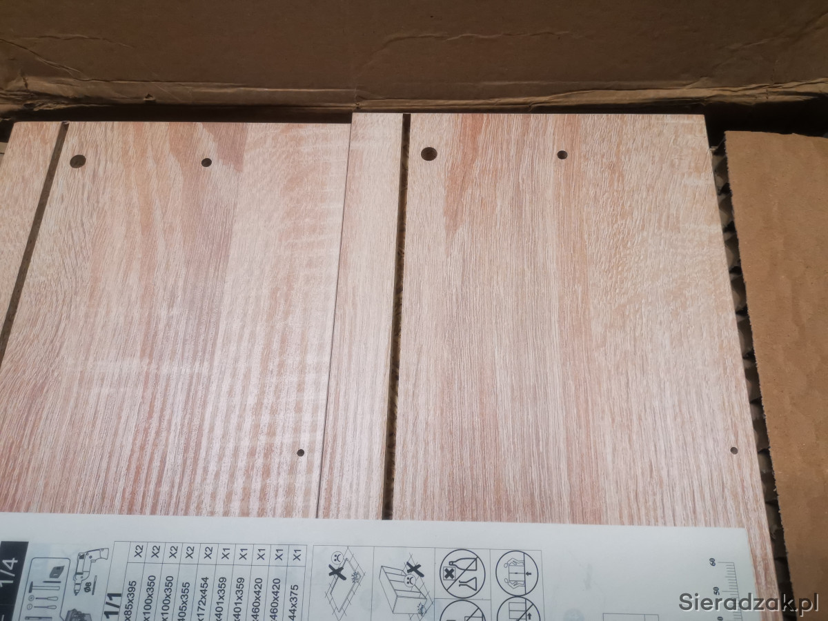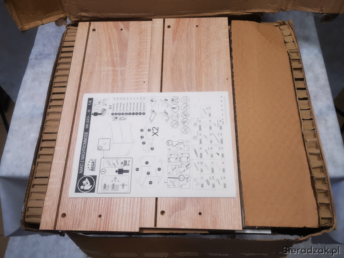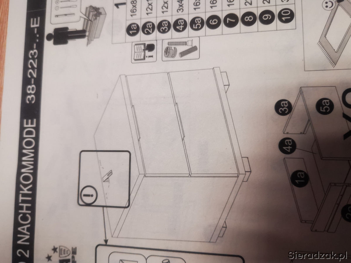 Sprzedam nowy stolik nocny Stella Trading 38-223-66 w kartonie do skręcenia jak na zdjęciach. Na jedym zdjęciu na instrukcji złożenia jest pokazane wygląd stolika, ale można go znaleźć też w internecie. Kolor stolika Dąb Sonoma, waga 8 kg, wymiary 42gł. x 46szer. x 43wys. cm. Pojemny i nowoczesny stolik. Polecam.