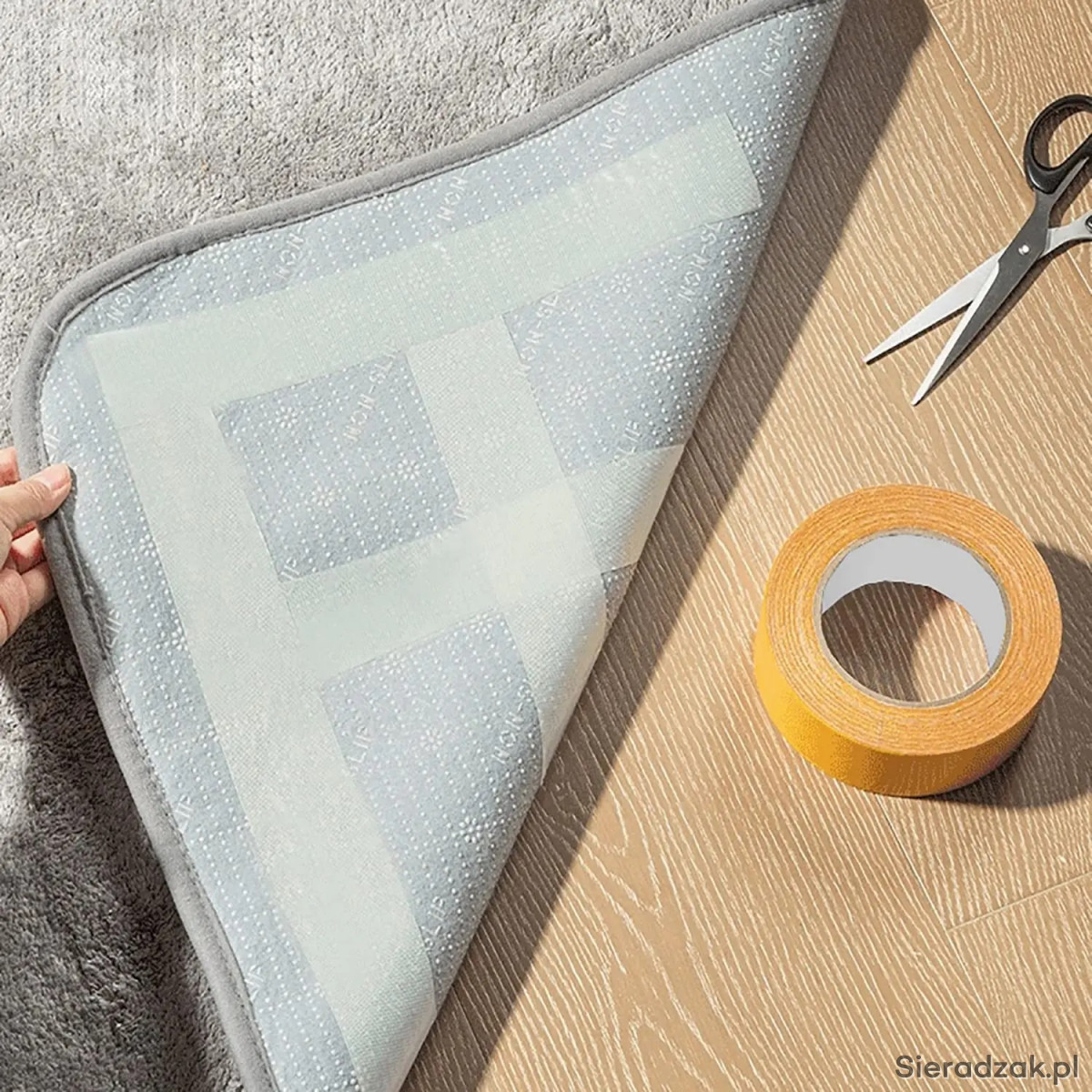 Oferowana taśma posiada szerokie zasosowanie. Przeznaczona jest do przyklejania do dowolnej powierzchni dywanów, wykładzin, mat podłogowych, dywaników samochodowych itp. Idealnie nadaje się do przyklejenia podwiniętych mankietów w ubraniach.