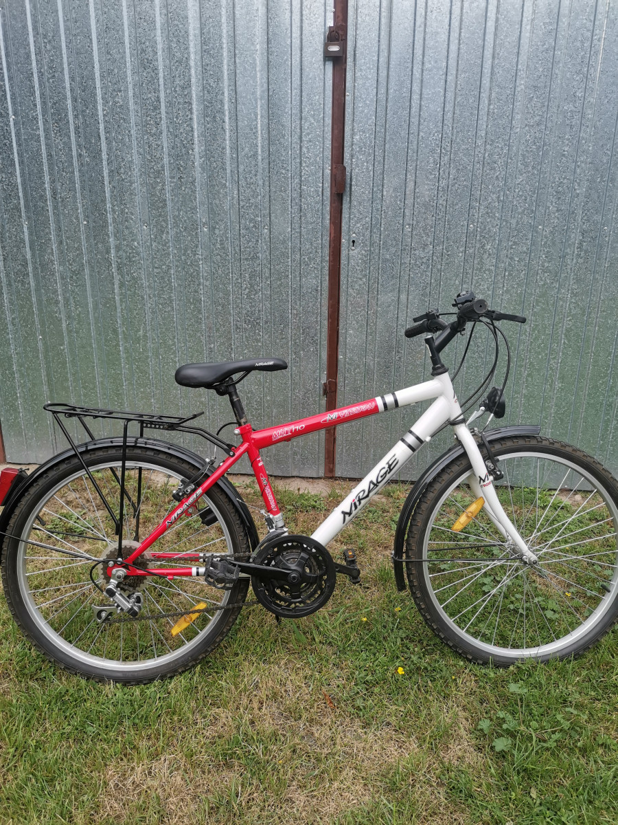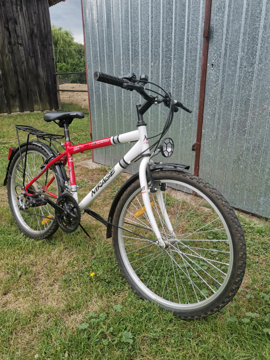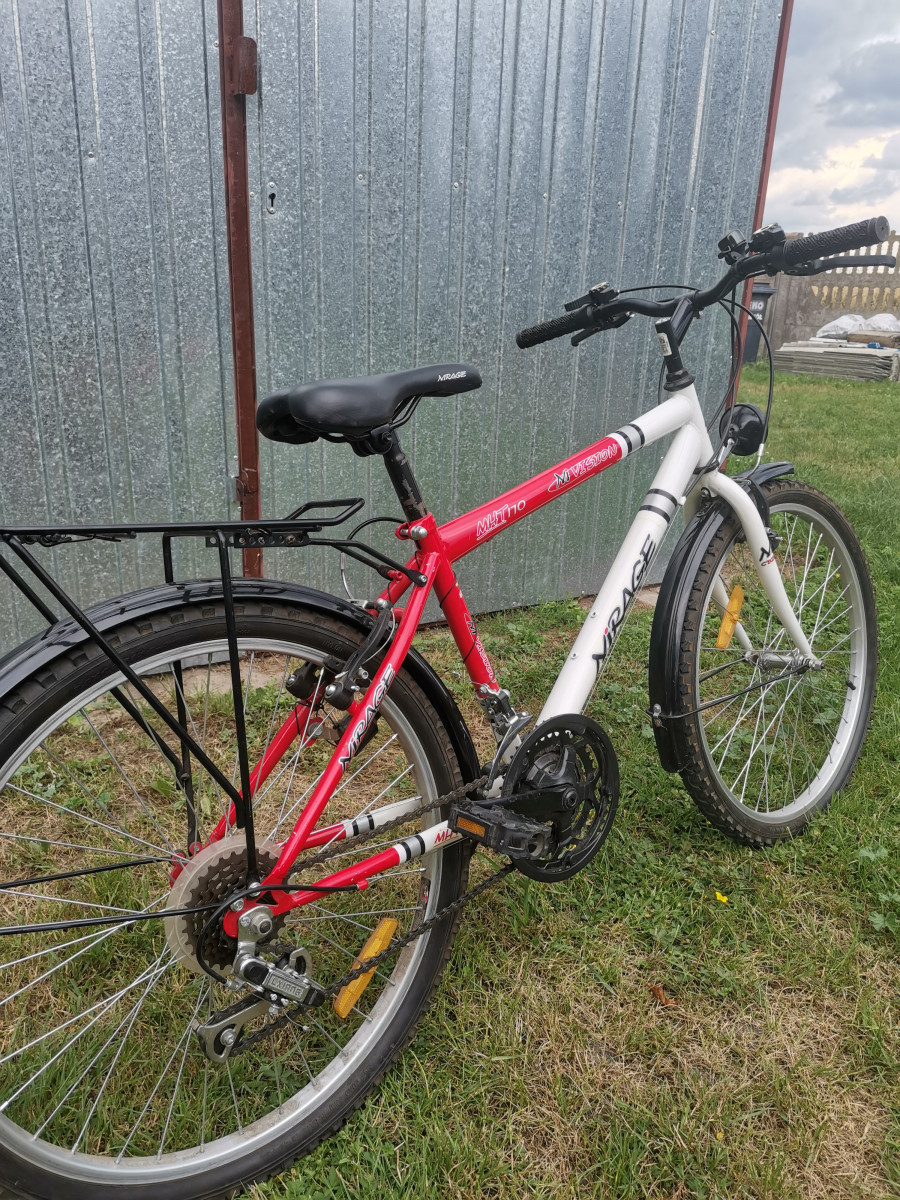 Rower górski biało czerwony koła 24" cale sportowy unisex Mirage Mi Vision MHT 170 z przerzutkami