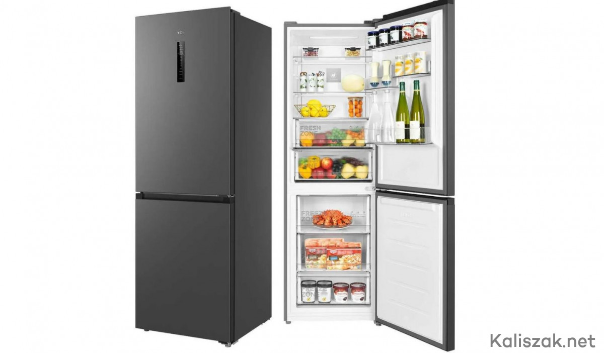 Na sprzedaż lodówka wolnostojąca TCL RP340BSD0 w eleganckim kolorze Quartz Gray. Wysokość 185 cm, pojemność całkowita 340 l (chłodziarka 223 l + zamrażarka 117 l), nowoczesny design i pełny system No Frost eliminujący konieczność rozmrażania.