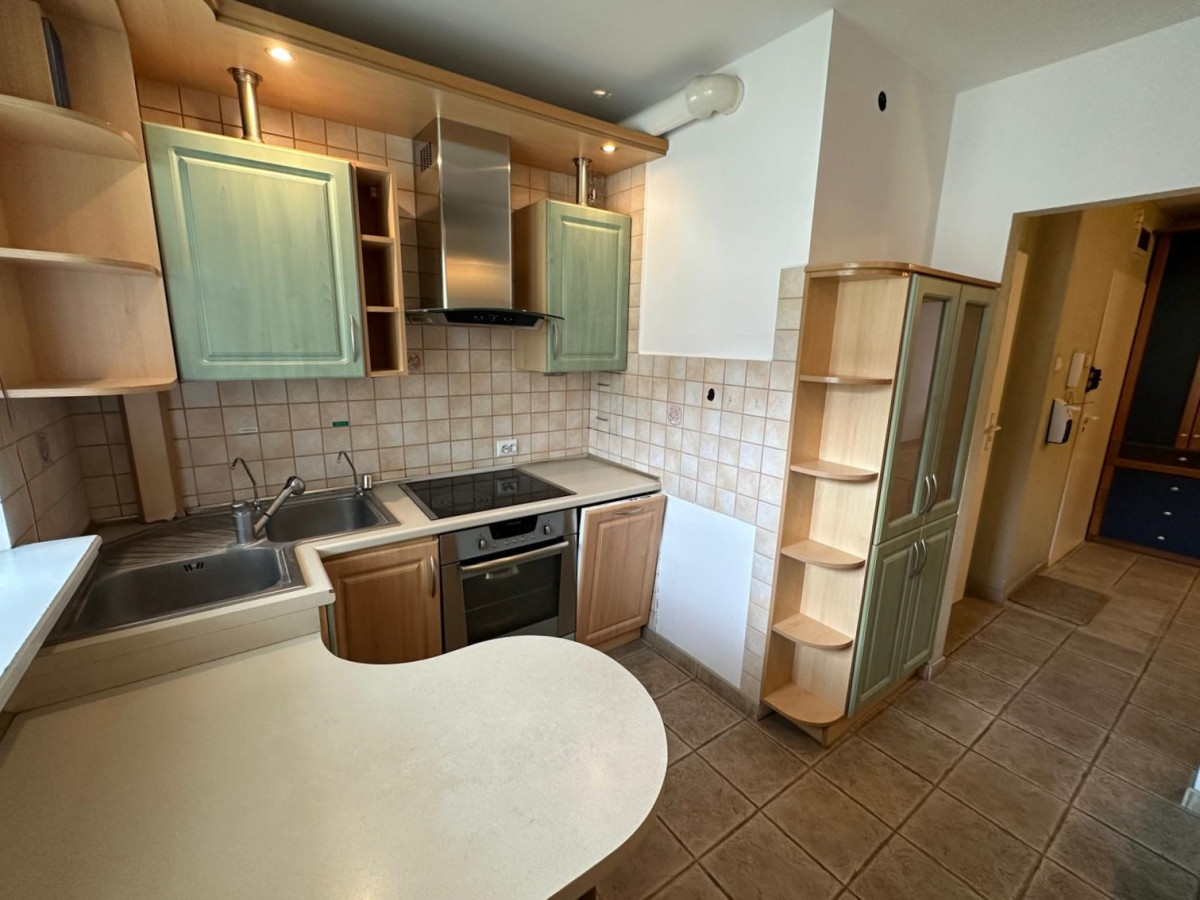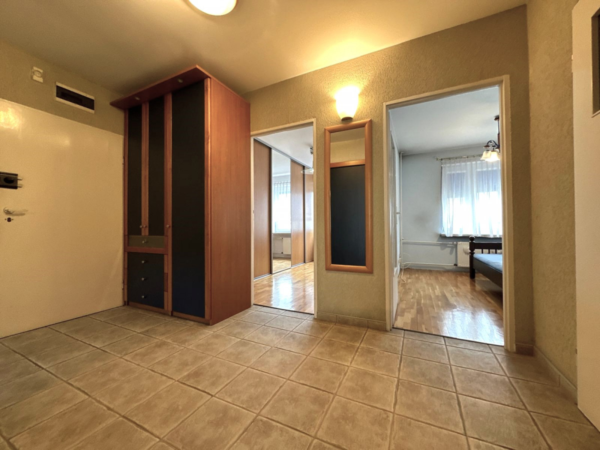 W cenie mieszkania pozostaje widoczna na zdjęciach zabudowa mebli kuchennych wraz ze sprawnym sprzętem AGD, przestronna zabudowa stała szaf w sypialni, szafy w korytarzu.