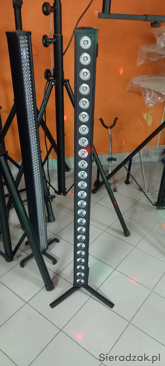 Dostępne też inne statywy oraz efekty świetlne, reflektory PAR LED, listwy LED BAR, głowy ruchome, stroboskopy, wytwornice dymu i baniek, statywy oświetleniowe.