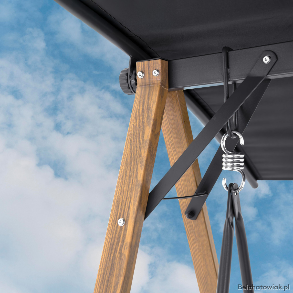 Dzięki przemyślanej konstrukcji, huśtawka zapewnia stabilność, bezpieczeństwo i komfort dla trzech osób – doskonała do codziennego użytku w ogrodzie lub na tarasie.