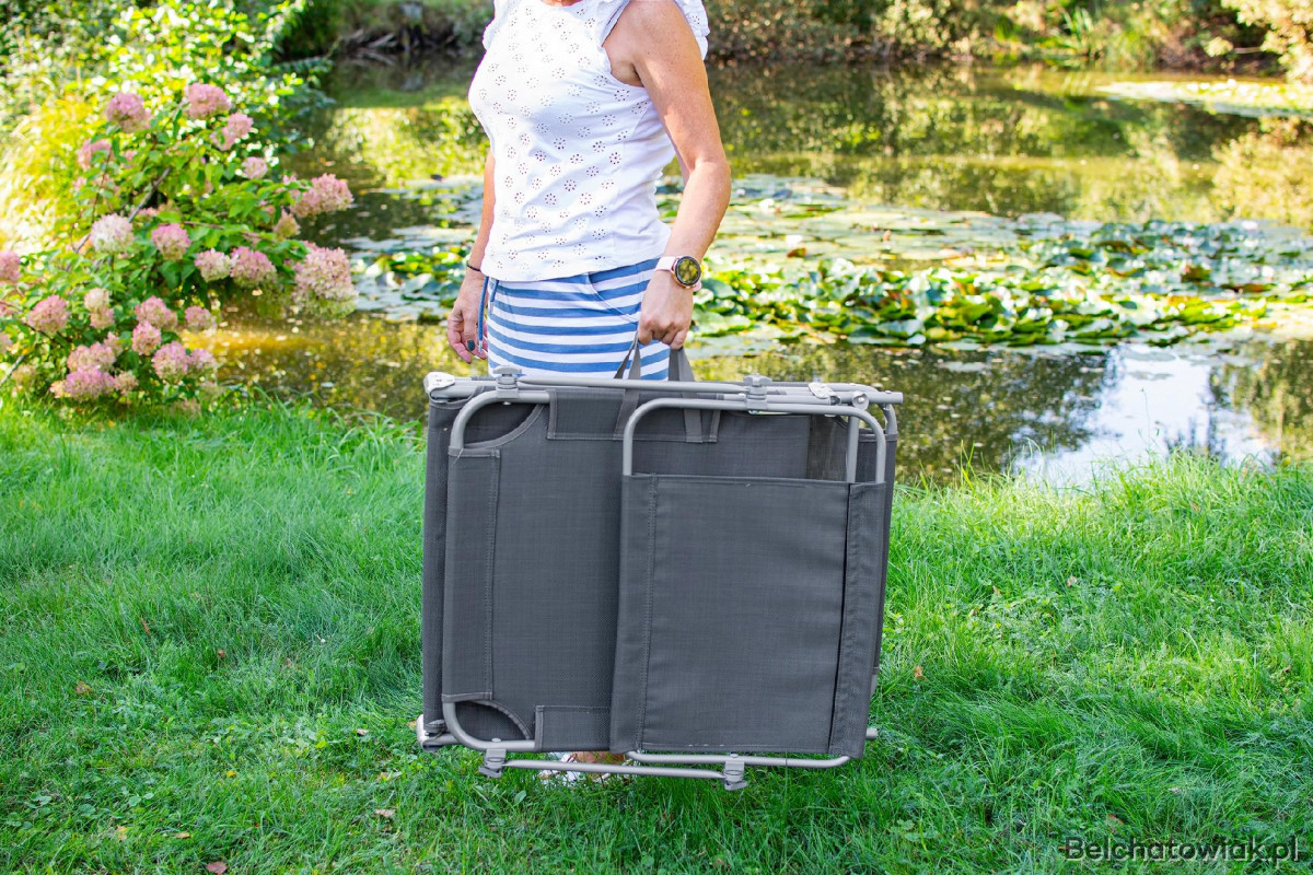 Dzięki funkcji składania i lekkiej konstrukcji, leżak łatwo przechować lub zabrać na wakacje. To idealne rozwiązanie do relaksu na świeżym powietrzu.