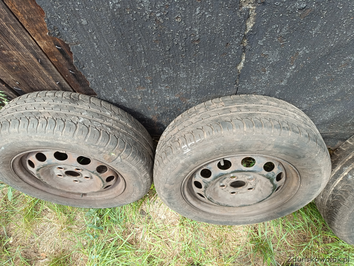 FELGI "zdrowe" bez rdzy, czarne. OPONY bez otarć, pęknięć. Jeszcze posłużą.