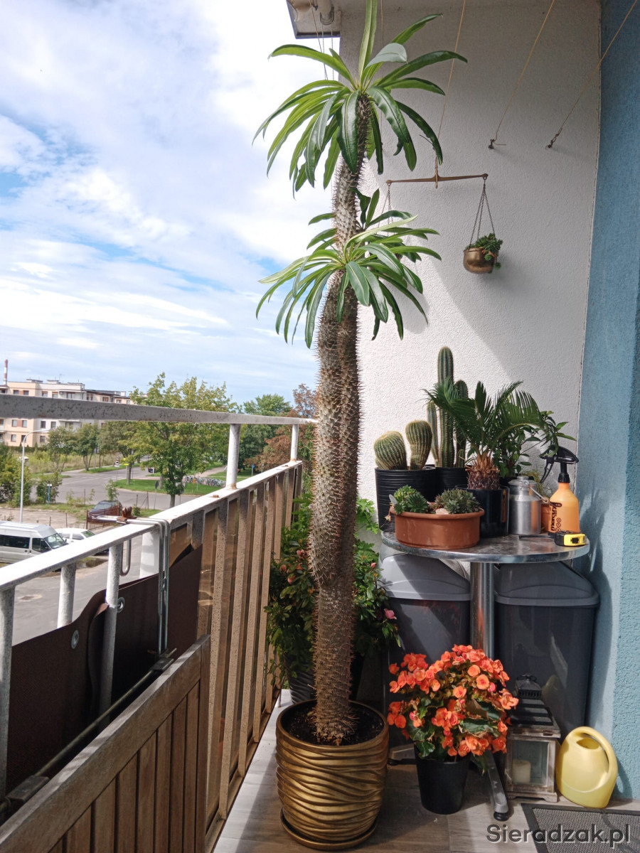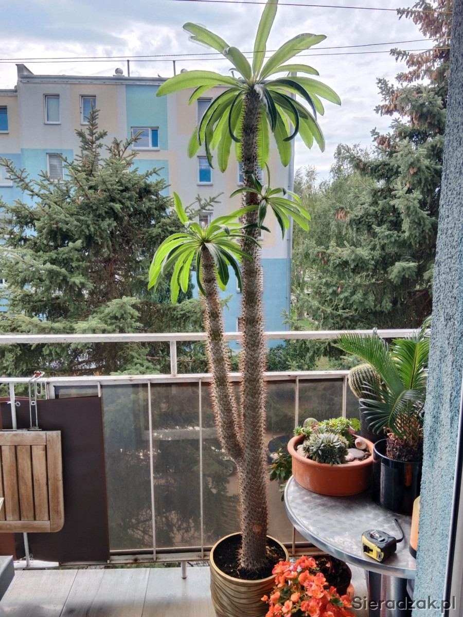 Ma 193 cm,mierzony od podłogi do końca pnia. Kaktus ma ponad 20lat. Roślina ma trzy pióropusze. Odbiór osobisty w Sieradzu.