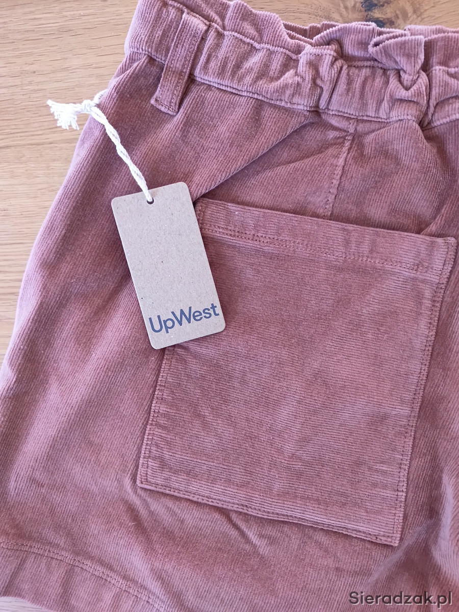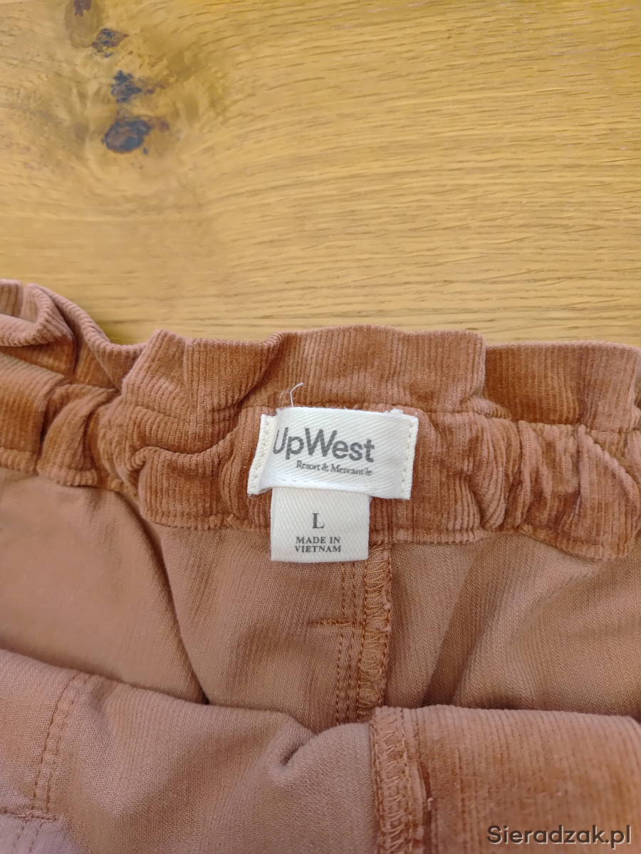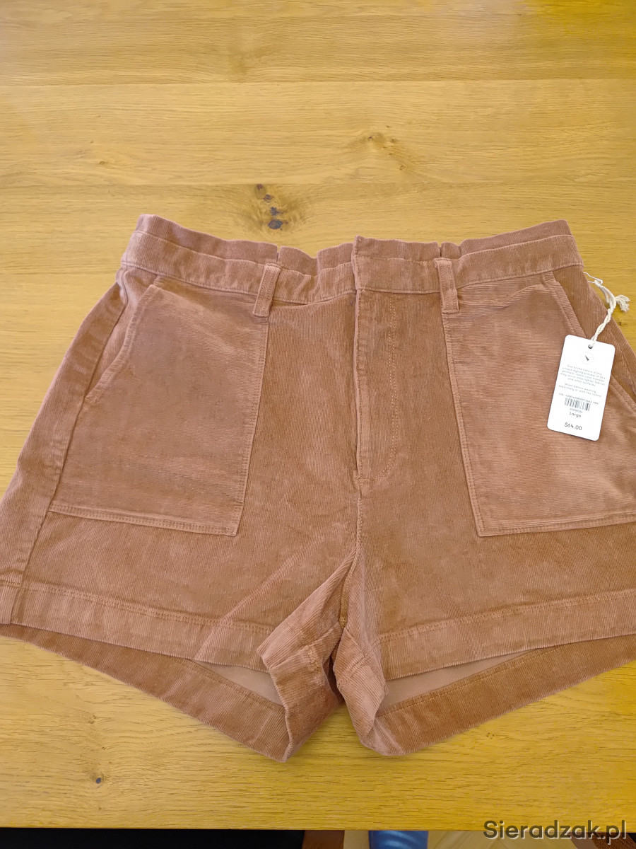 Nowe damskie spodnie krótkie ze sztruksu, kolor brąz ceglasty, na metce rozmiar L (44-46). W pasie praktyczna guma, która świetnie dopasowuje się do talii. W tkaninie dodatek elastycznej nitki dzieki temu spodnie sa bardzo wygodne. Polecam