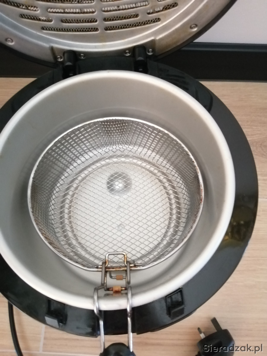 Frytkownica tłuszczowa Tefal. Używana, ale nadal w dobrym stanie. Posiada drobne ślady użytkowania. Zakupiona w UK. Idealna do frytek, rybki, mięska, krążków cebulowych i innych przekąsek. Po użyciu i ostygnieciu tłuszcz można zlać. Frytkownicę przetrzeć ręcznikiem papierowym. Sitko na rączce, wyciągane. Górną część można zdjąć, umyć w wodzie z płynem, wysuszyć i założyć ponownie. Mogę dorzucić przejściówkę na wtyczkę.