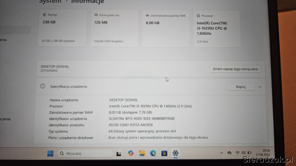 Nie tego szukasz? Przejrzyj inne oferty z tej kategorii (Telefony i Komputery › Laptopy i podzespoły). Możesz też zawsze przejść na stronę główną lub skorzystać z wyszukiwarki. ⊗