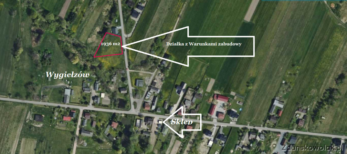 Prezentujemy na sprzedaż działkę budowlaną o powierzchni około 1930 m2 znajdującą się w Wygiełzowie gmina Zapolice