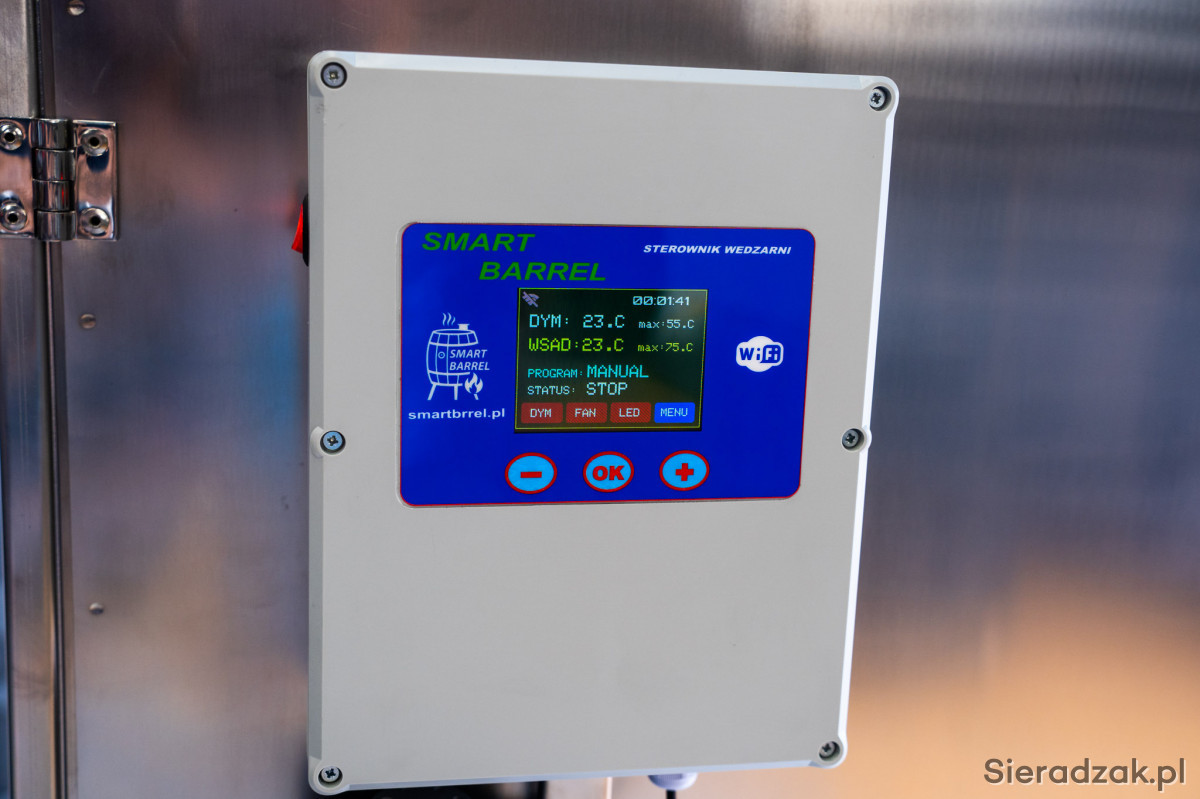 Na szczególną uwagę zasługuje zastosowany nowoczesny sterownik WiFi, który pozwala na bieżące śledzenie i kontrolę parametrów wędzenia z poziomu każdego urządzenia z dostępem do internetu. Niezależnie od tego, czy jesteś przy wędzarni, czy poza domem – masz pełną kontrolę nad temperaturą i czasem procesu wędzenia z poziomu smartfona, tabletu czy komputera.