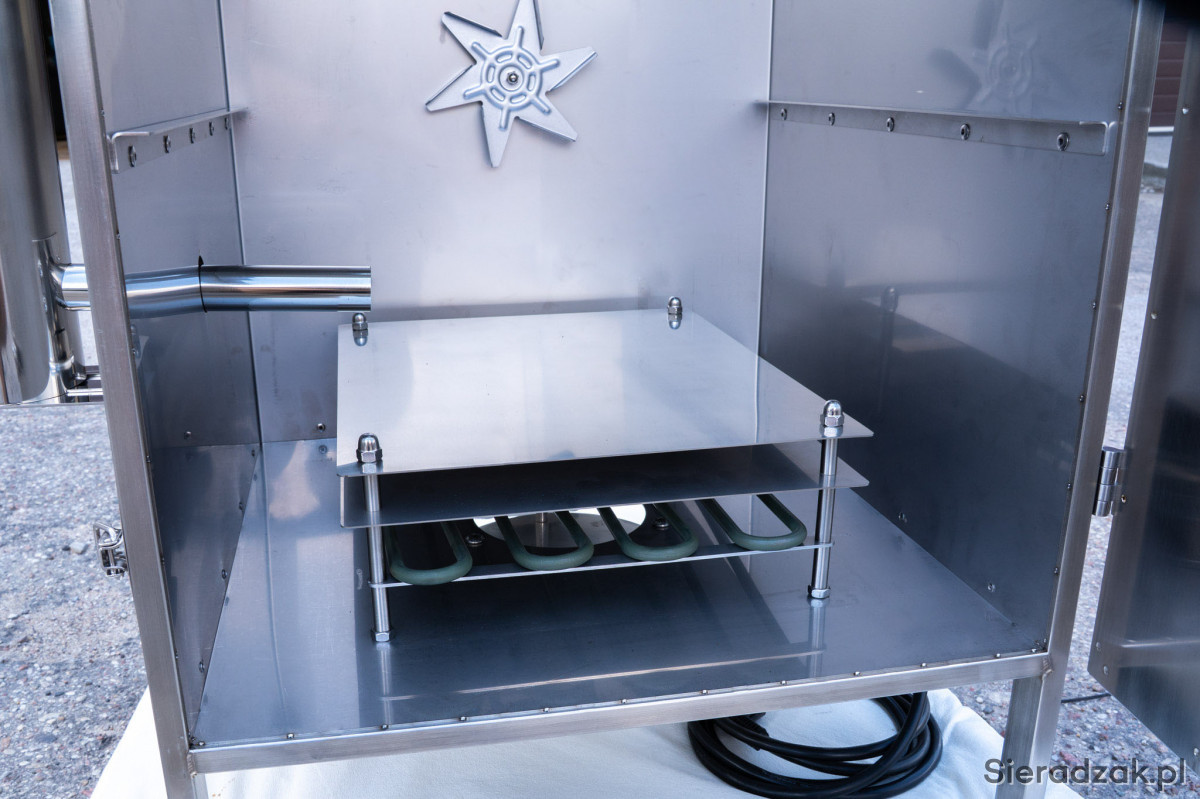 Wędzarnia została w całości wykonana z wysokogatunkowej stali nierdzewnej, co gwarantuje trwałość, odporność na korozję i łatwość utrzymania w czystości. Dodatkowo komora została zaizolowana matą kauczukową, co skutecznie ogranicza straty ciepła i pozwala na jeszcze lepszą kontrolę temperatury podczas całego procesu wędzenia.