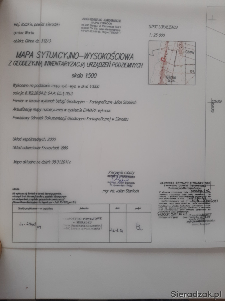 Działka znajduje się w miejscowości Glinno woj.Łódzkim przy zbiorniku wodnym Jeziorsko 10 km od miasta Warta ,do wody jest około 20 m.Działka ma powierzchnię 25a z czego 1a przypada na znajdujący się bunkier z czasów 2 wojny ,szerokość działki to 17m a długość około 97m ,na działce znajduje się przyłącze wodne (prądu nie posiada ze względu kosztów utrzymania)Działka posiada KW i WZ a także mapę inwentaryzacyjną.