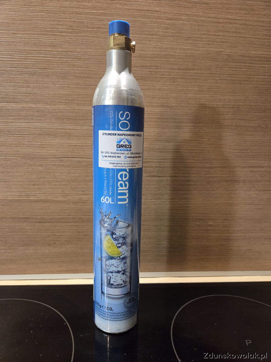 Soda nabój CO2 cylinder do saturatora butla z zaworem twist. Napełniona. Nie użyta ani razu. Okazało się że ja potrzebuje z innym zaworem, te różowe.