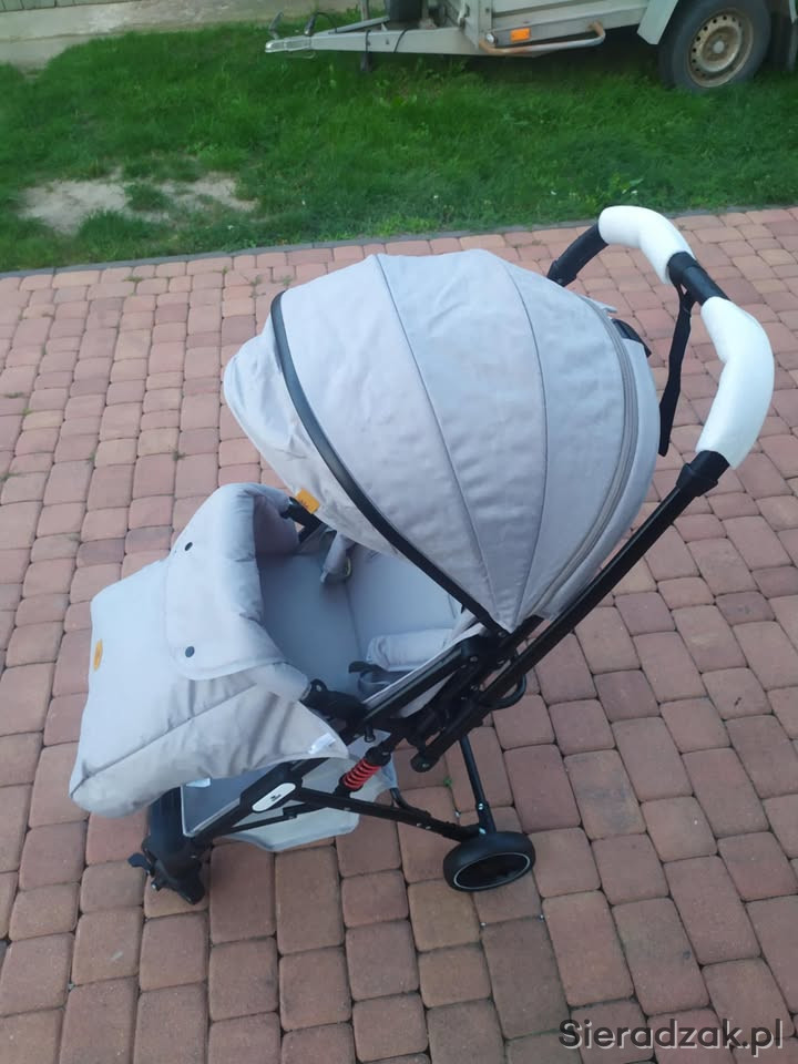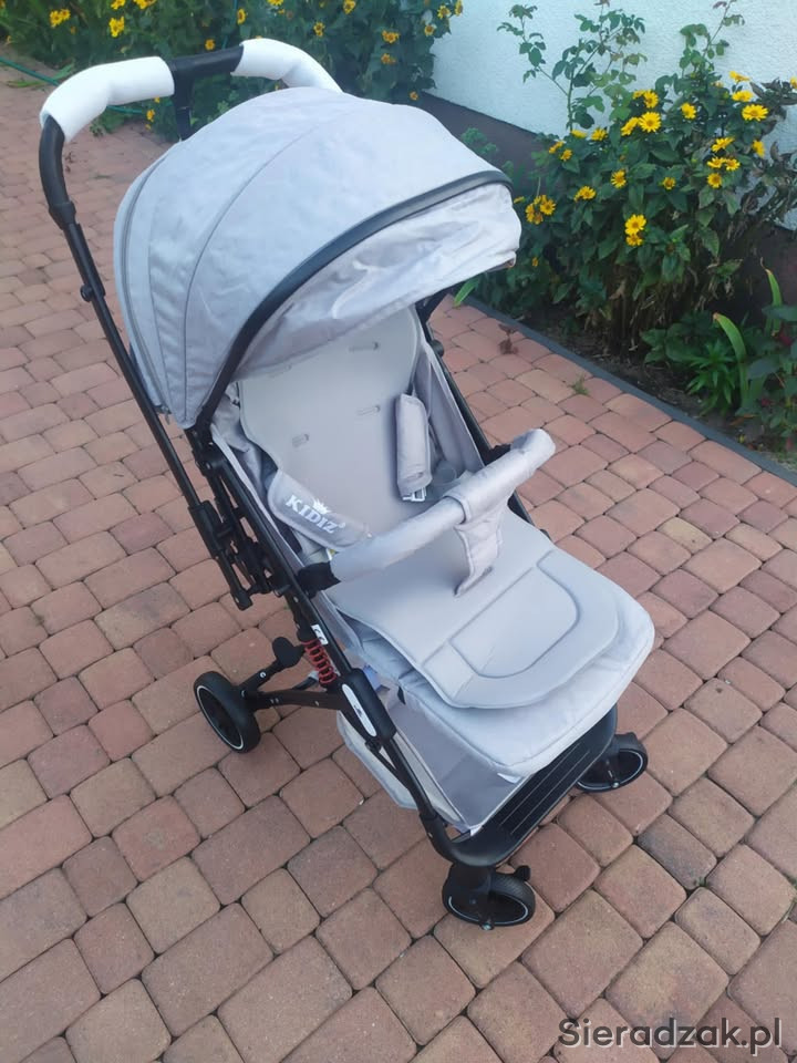 Sprzedam nową spacerówkę Najważniejsze cechy: - Przednie koła obracane o 360° z amortyzacją. - Regulowane oparcie i podnóżek. - Rozkładany daszek przeciwsłoneczny z okienkiem. - 5-punktowy pas bezpieczeństwa z zapięciem zatrzaskowym. - Plandeka pogodowa, moskitiera i śpiworek na nogi w zestawie. - Zdejmowany zderzak. - Stylowe i przemyślane wzornictwo. - Praktyczny hamulec tylnego koła. - Wózek dziecięcy Kidiz zapewnia bezpieczną i wygodną jazdę dla Twojego dziecka w każdej sytuacji. Wyściełany 5-punktowy pas bezpieczeństwa zapewnia maksymalną ochronę i zapobiega niepożądanym ruchom podczas jazdy. Dużo wyściełane, regulowane oparcie i podnóżek zapewniają ergonomiczną pozycję siedzącą, która dopasowuje się do potrzeb dziecka i sprawia, że jest ono wygodne, niezależnie od tego, czy siedzi czy leżąco. - Łatwy w użyciu: Innowacyjny mechanizm składania jedną ręką umożliwia szybkie i łatwe składanie wózka dziecięcego jednym ruchem, idealny dla rodziców, którzy często podróżują i przywiązują wagę do łatwej obsługi. - Bez względu na pogodę: Dołączona plandeka pogodowa i osłona przeciwsłoneczna zapewniają niezawodną ochronę przed deszczem, wiatrem i słońcem, dzięki czemu Twoje dziecko pozostaje suche, ciepłe i bezpieczne podczas odkrywania świata. - Wózek dziecięcy jest wyposażony w regulowane oparcie i podnóżek, które umożliwiają ustawienie idealnej pozycji dla Twojego dziecka. Dzięki temu można wygodnie leżeć i odpocząć lub siedzieć prosto i cieszyć się widokiem w podróży. - Duży kosz do przechowywania pod siedzeniem zapewnia wystarczająco dużo miejsca na torbę do przewijania, zakupy i inne ważne przybory, dzięki czemu masz wszystko, co potrzebne w podróży. Dzięki temu możesz spokojnie spacerować z dzieckiem, nie martwiąc się o brak miejsca do przechowywania.