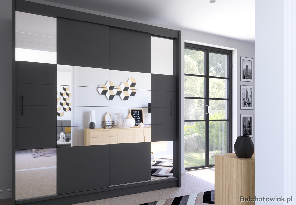 Nowoczesna szafa przesuwna grafitowa z lustrem to idealne rozwiązanie dla osób, które cenią styl i praktyczność. Dzięki eleganckiemu frontowi z lustrem w odcieniu grafitowym, mebel powiększa optycznie przestrzeń i dodaje wnętrzu wyjątkowego charakteru. Doskonale sprawdzi się jako szafa do sypialni, garderoby czy przedpokoju.
