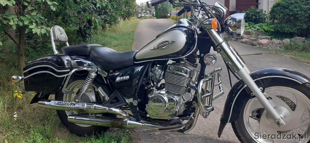Sprzedam motocykl Jinlun Romet 250,rok produkcji 2007,moc 12.00 KW dwucylindrowy. Bardzo mały przebieg 785 km,stan techniczny bardzo dobry.