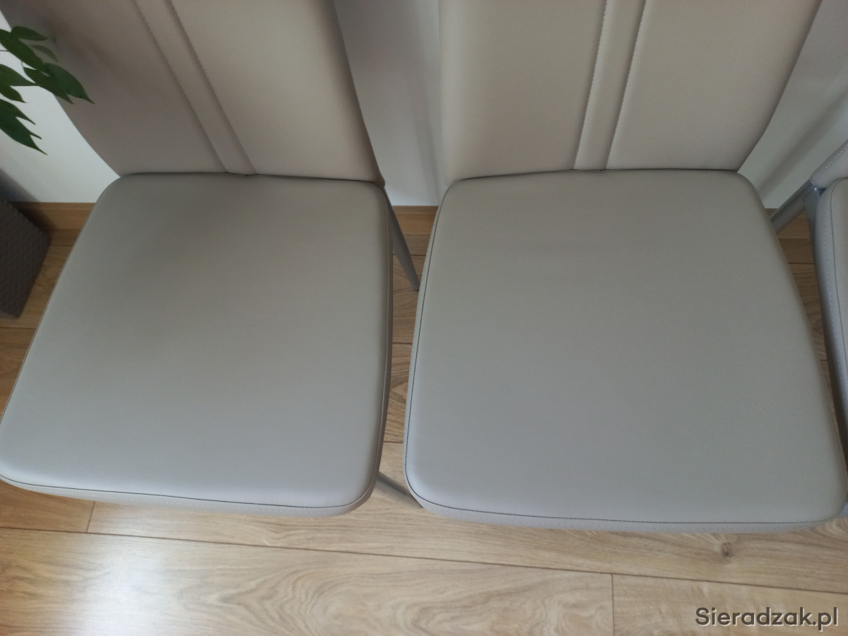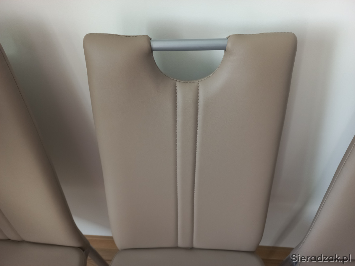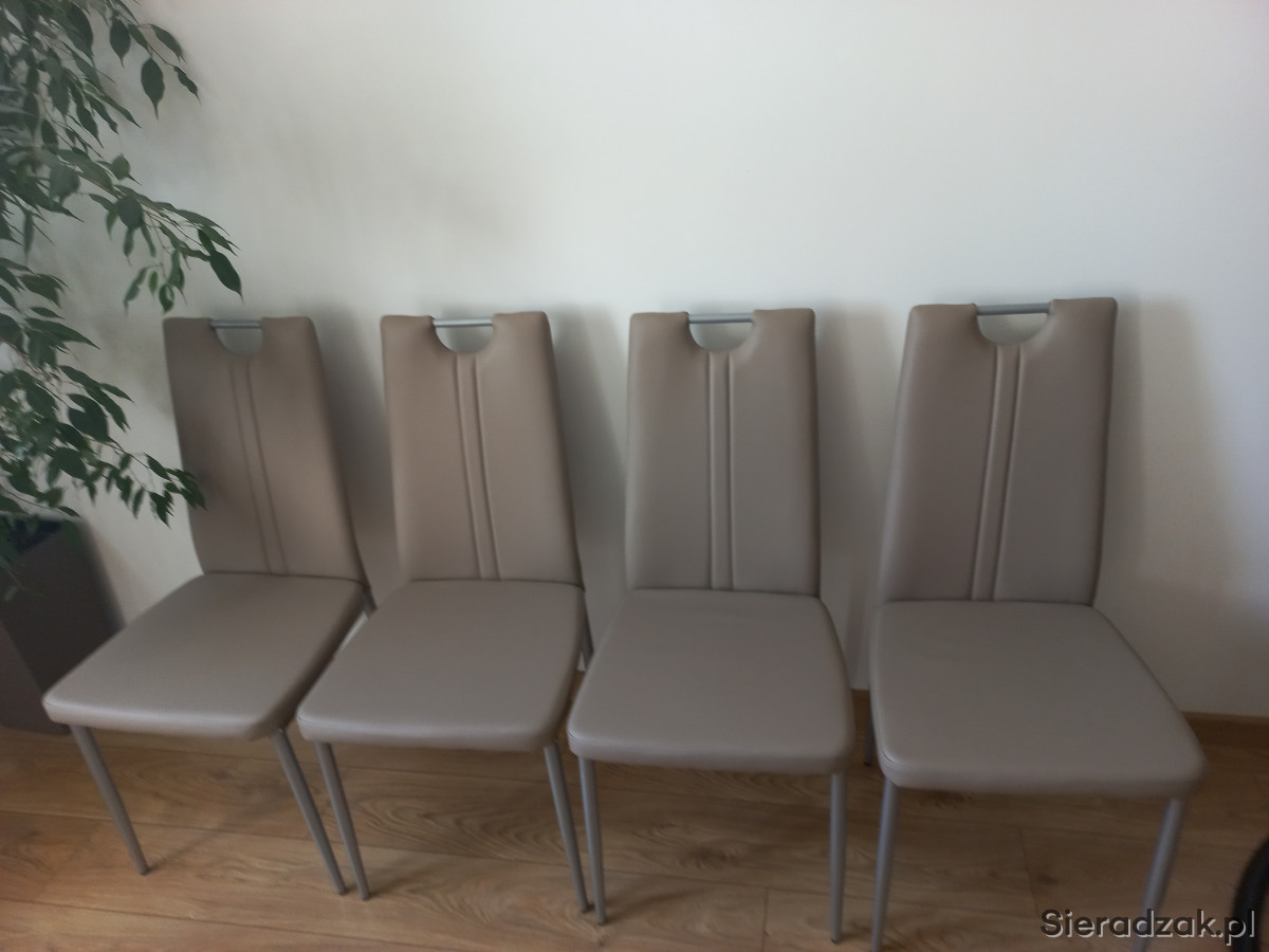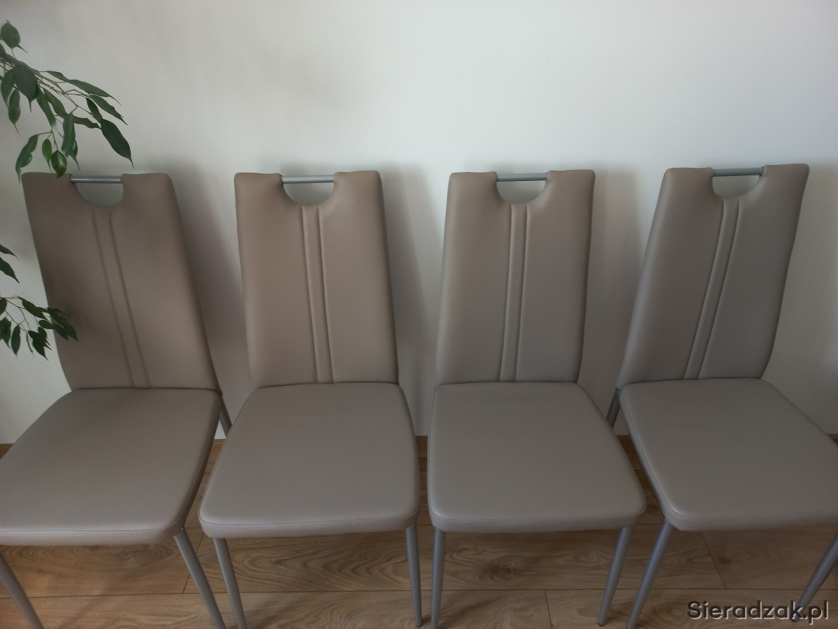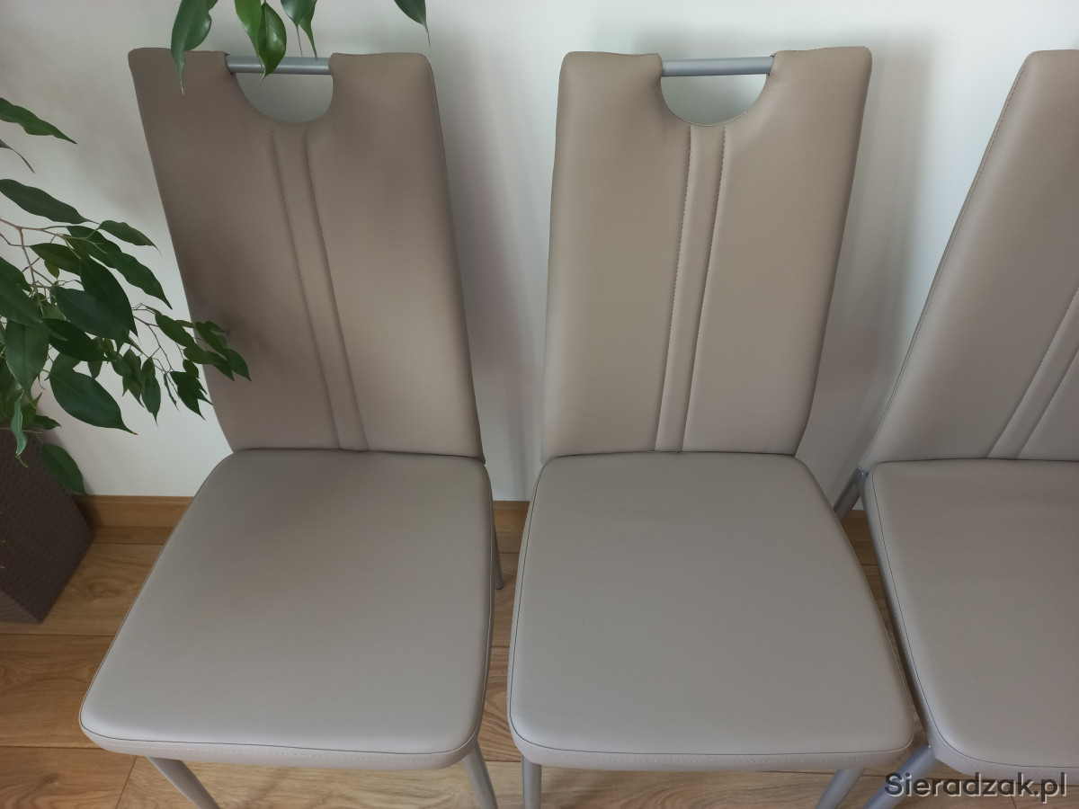 Nowe, nigdy nie używane 4 krzesła z praktyczniej ekoskóry w kolorze latte na metalowych nogach.