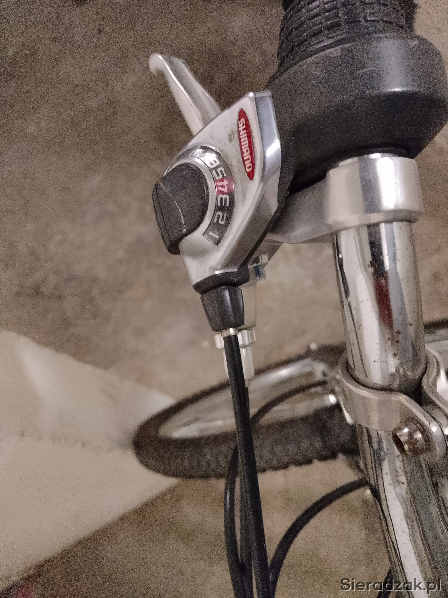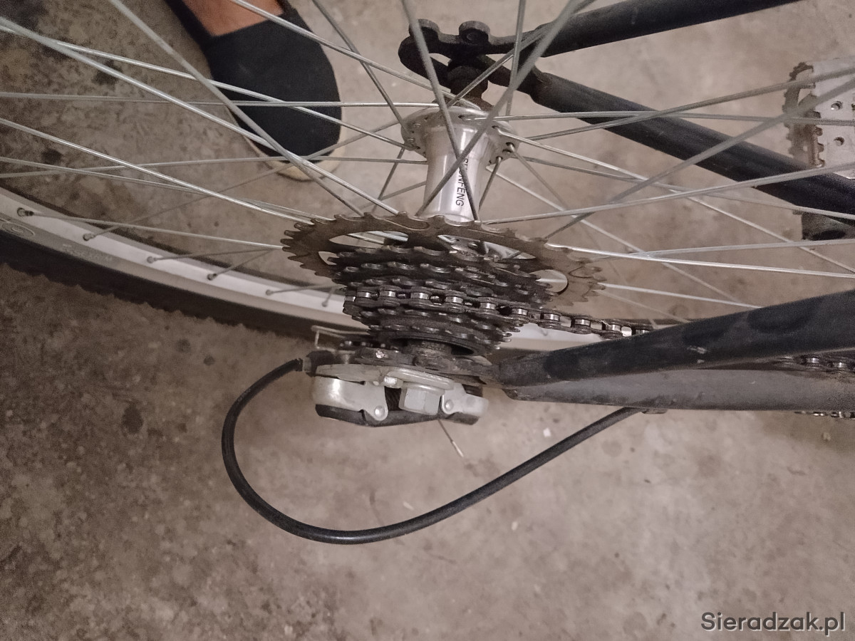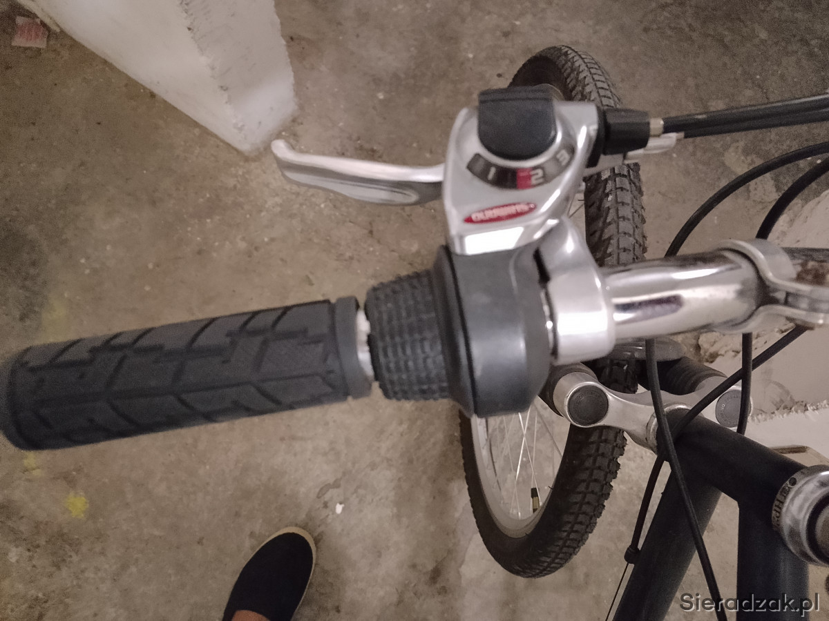 Rower górski koła 26 ".Opony stan b.dobry . Przerzutka przód 3 x ,tył 7x. Przednie amortyzatory . Rama aluminiowa bardzo lekka. Stan roweru bardzo dobry.