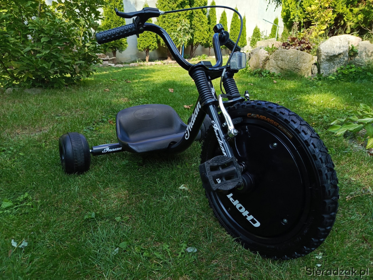 Witam mam do sprzedania Trajkę dla dziecka . Trajka jest używana ale została rozebrana do ostatniej śrubeczki ,wypiaskowana,pomalowana w podkład epoksydowy ,podkład akrylowy ,lakier metalik plus lakier bezbarwny . Zostały zrobione nowe grafiki które są zabezpieczone lakierem bezbarwnym. Założona nowa opona przednia 16 cali. ( w gratisie dokładam drugą opone plus drugą dętkę ) także nowa linka hamulcowa i pancerz hamulcowy.Trajka wygląda bardzo ładnie ,efektownie .Lakier jakim została pomalowana rama to ciemny grafit w metaliku , reszta elementów polakierowana czarnym lakierem akrylowym w połysku.Fotel jest regulowany w kilku wriantach zależności od wzrostu dziecka. Przedni widelec jest imitacją amortyzatora jest to sztywny widelec. Polecam