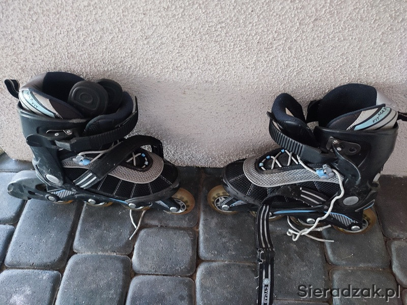 Jedne firmy CYCAB 36 rozmiar , drugie firmy NICE rozmiar regulowany o 5 stopni . Ogulnie w stanie dobrym , chciałbym sprzedać w komplecie .