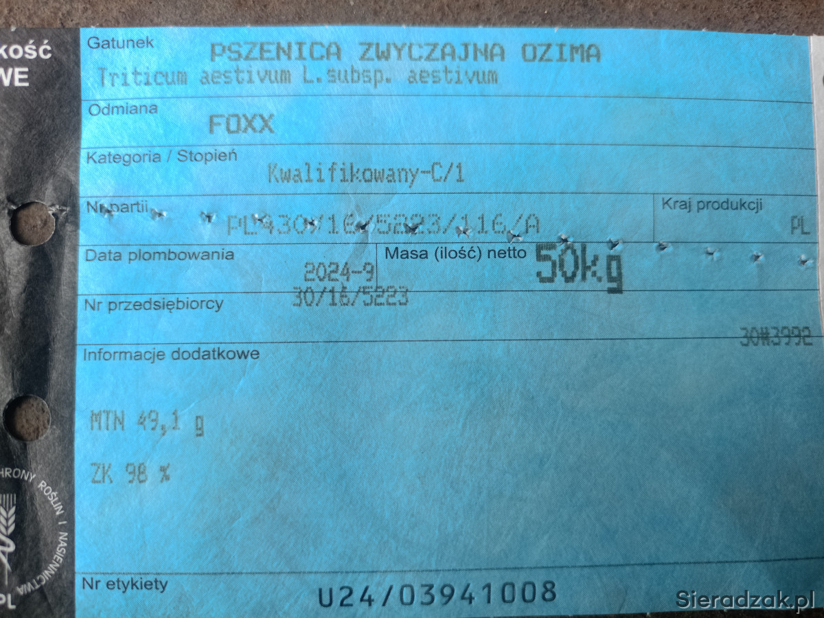 Witam mam do sprzedania pszenicę ozimą ościstą odmiana Foxx.