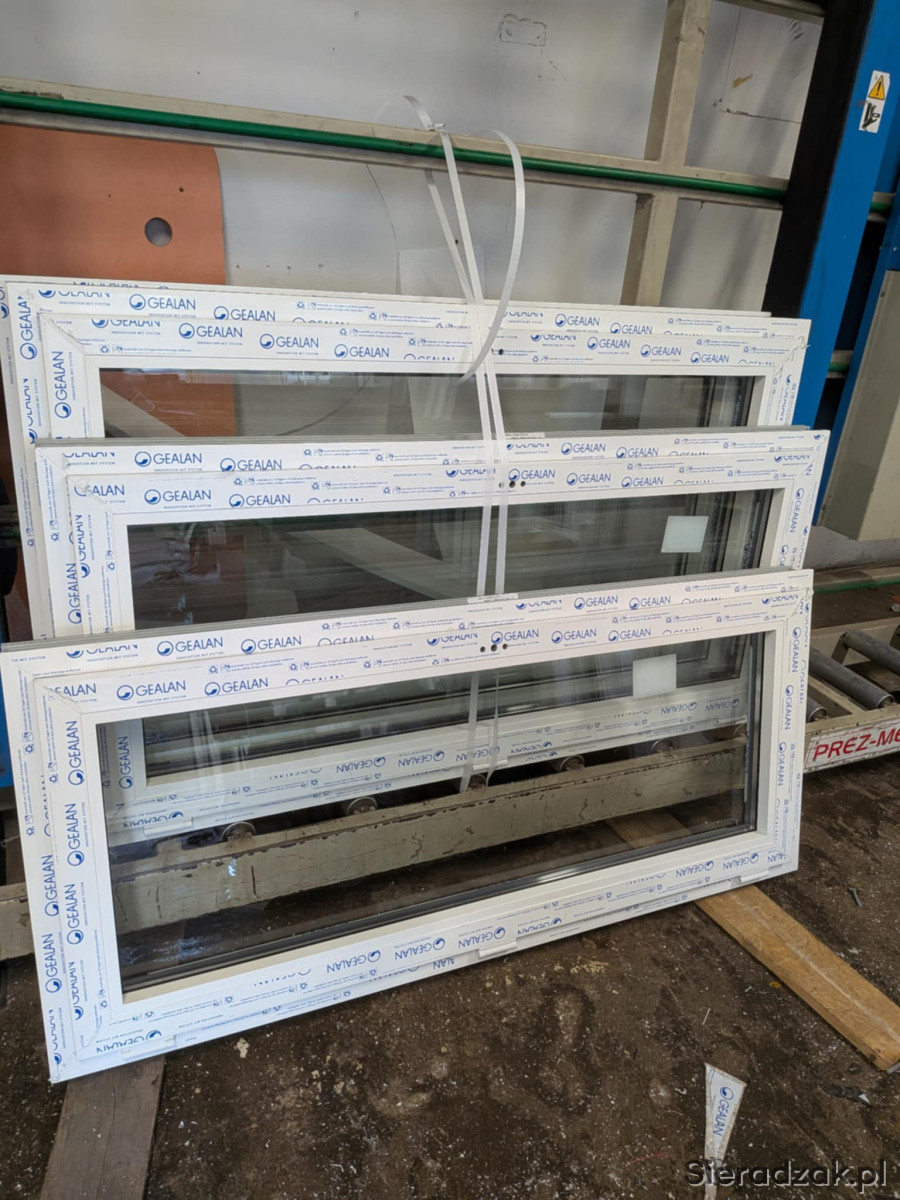 Na sprzedaż 4 nowe okna uchylne z PCV na profilach Gealan Linear. Okna w kolorze wewnętrznym białym, na zewnątrz antracytowe. Pakiet dwuszybowy.