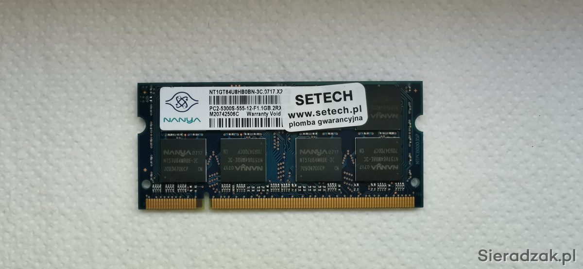 Sprzedam używaną pamięć DDR2 o pojemności 1 GIGA, doskonały dodatek do starszego laptopa, zapewniający szybsze działanie i lepszą wydajność systemu.