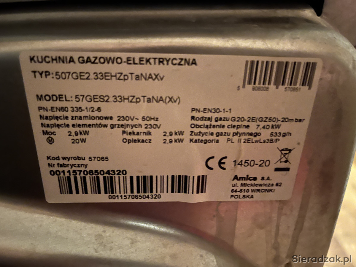 2- lata Kuchnia kuchenka gazowo-elektryczna Amica szerokość 50cm