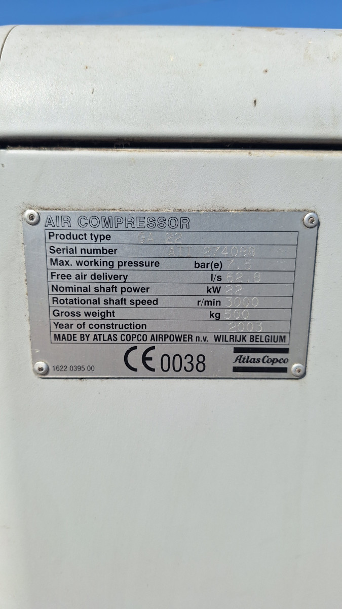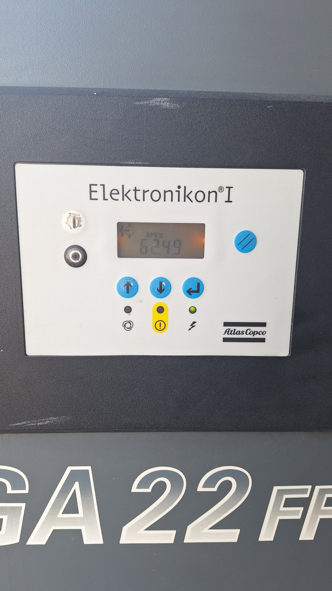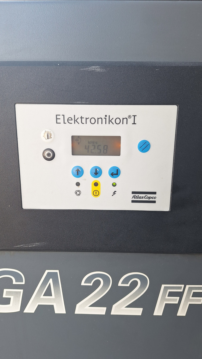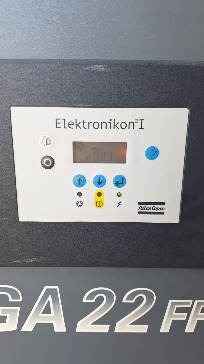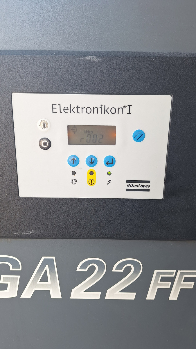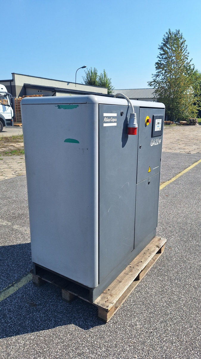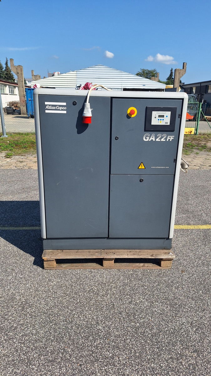 Sprzedam sprężarkę śrubową Atlas Copco GA22FF, o parametrach widocznych na tabliczce znamionowej.Urządzenie sprawne.
